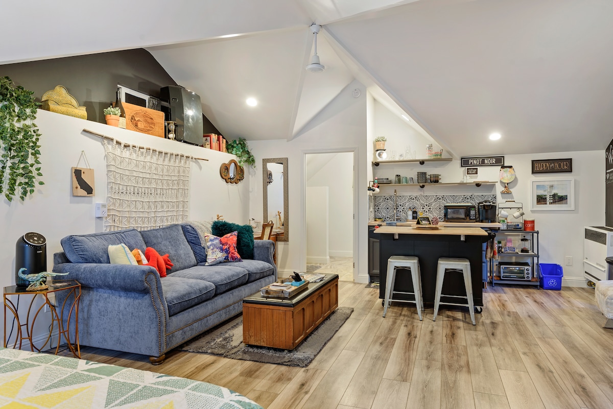 Naš umik se nahaja v osrčju vinske dežele Sonome - v bližini vinskih kleti, pivovarn, restavracij in več državnih parkov, ki so oddaljeni manj kot 20 minut: državni park Annadel (4 mi) Spring Lake (3 mi), državni park Sugarloaf Ridge (10 mi). Je elegantno urejena, čista, sodobna in tiha. Ponujamo vam novo zakonsko posteljo, zasebni vhod, kopalnico, parkirišče izven ulice in majhno kuhinjo. Prostor je na novo zgrajen in pripravljen za uživanje.