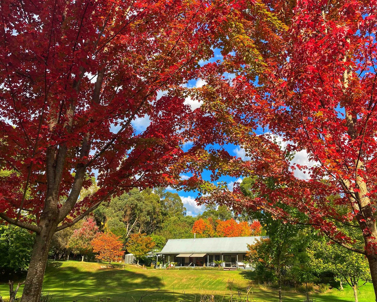 Green Gables is a peaceful cottage situated in lush gardens on the banks of the Ovens River in Bright. The Murray to Mountains Rail Trail is right on our doorstep and we are also directly behind the Bright golf course- so pack your clubs! From Green Gables, it is an easy walk, ride or drive into the township of Bright with its boutique shops and eateries, regular festivals and of course beautiful European style landscape all nestled in the foothills of the Victorian Alps.