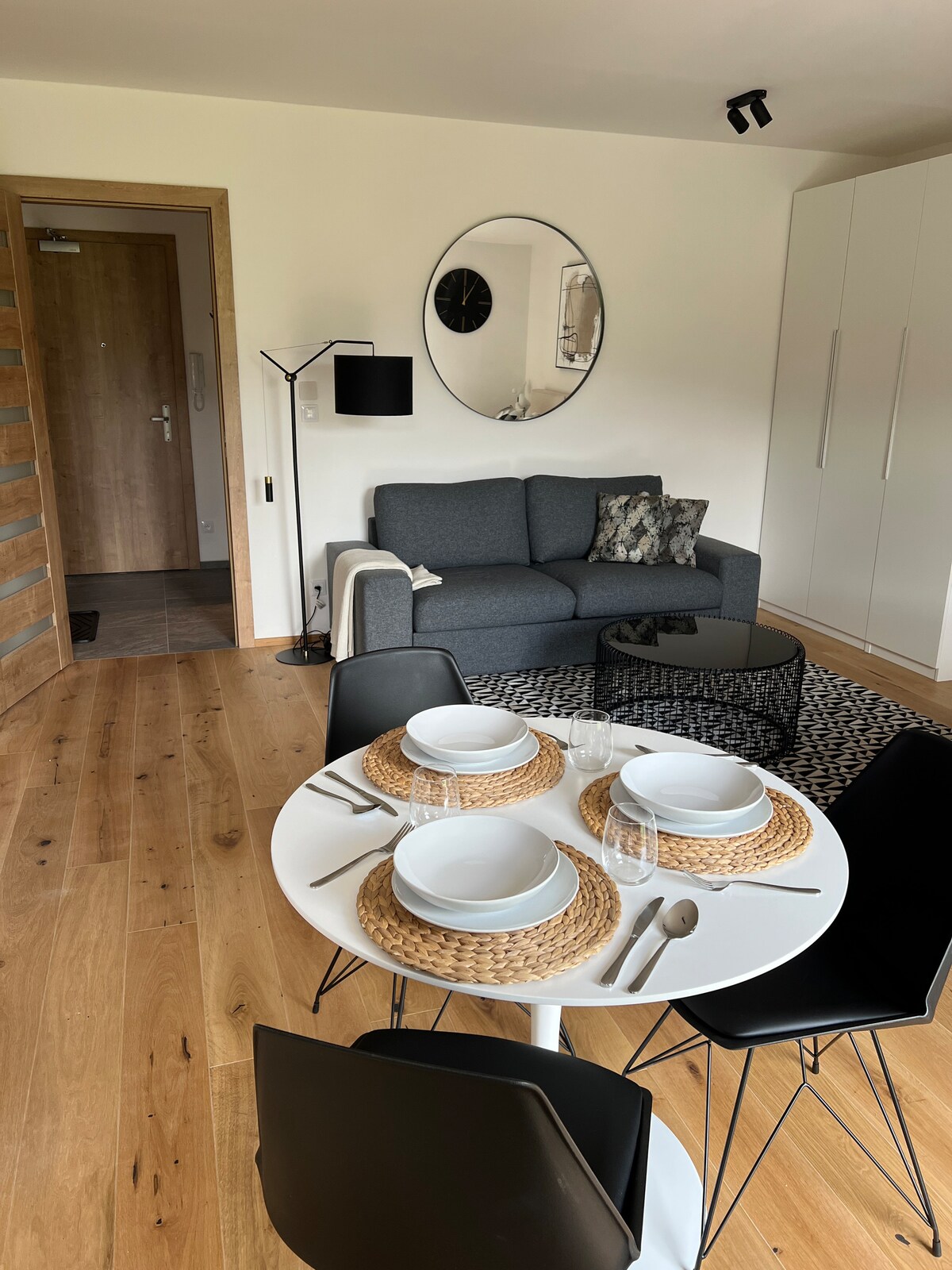 Tříůžkový apartmán v 1. patře dostupný výtahem. Pokoj s manželskou postelí, samostatnou postelí + dětská postýlka. Plně vybavená kuchyně, kávovar, lednice, mikrovlnná trouba, myčka. Koupelna se sprchovým koutem, pračka, wc. Balkon s posezením. Velká chodba s úložným prostorem, podlahové topení a rekuperace. TV a wifi samozřejmostí .Apartmán je směřován na slunnou stranu, je velmi útulný. V ceně sklep se sušákem na boty a stojanem na kola. Parkování v areálu Resortu v ceně. Sauny za poplatek.