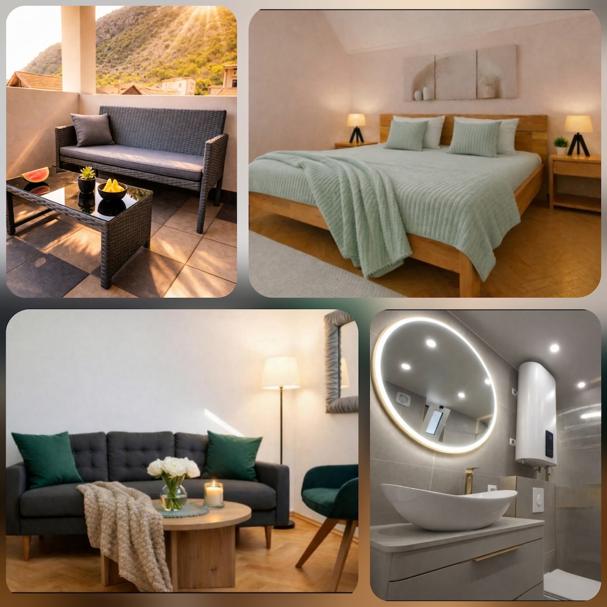 V celoti postreženo dvosobno stanovanje v skupnem nadstropju 50 m2. To razkošno opremljeno stanovanje vključuje popolnoma opremljeno kuhinjo z dnevno sobo, 1 kopalnico in vrtom. Stanovanje se nahaja v mirnem in priljubljenem delu Mostarja v bližini slavnega Starega mostu ter samo 100 metrov od avtobusne in železniške postaje. Staro mestno jedro in most sta od Airbnbja oddaljena 0,9 km. Avtobusna in železniška postaja je 100 metrov stran od namestitve