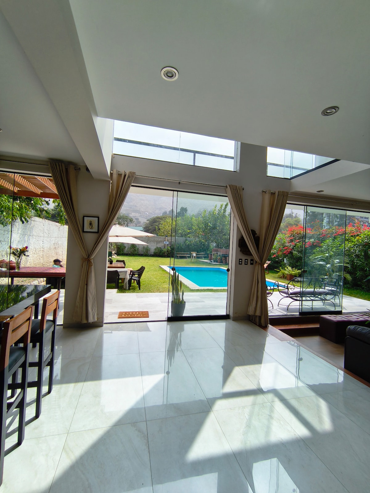 Popolnoma prenovljena hiša s 3 spalnicami. Velika terasa in bazen s panoramskim razgledom. Ekskluzivno mesto 30 km od Lime, Valle de Los Cóndores Chaclacayo. Tam boste uživali v miru območja, se sončili ob bazenu SAMO ZA VAS in uživali v okusnih žarih v ekskluzivnem okolju. Rezervacija in plačilo sta možna SAMO v aplikaciji AIRBNB. Največ 8 gostov, gostje NISO dovoljeni za ta dan. Pridite s prijatelji ali družino.