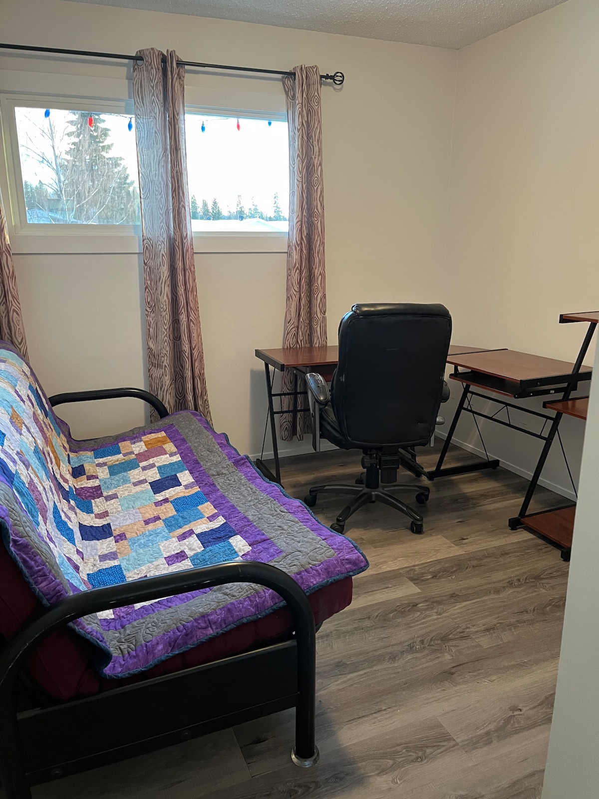 Our ground level 2 bed/1 bath vaulted legal suite is 6 minutes from Smithers on a paved road situated on 32 acres. Bedrooms are connected. Fully stocked kitchen. Pack ‘n Play with sheets for your Baby. Sorry, no pets. Enjoy a complementary Breakfast (added $20 value). Our farm fresh eggs, along with harvest bread from our local Bakery. Also, Keurig coffee maker, coffee pods, cream, sugar etc. On site space for boat and recreational vehicle parking. Enjoy your stay in beautiful Smithers, BC.