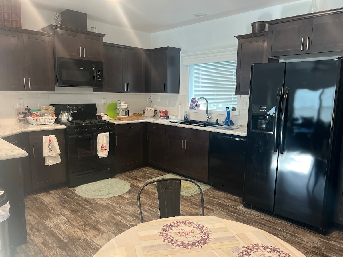 Pripeljite svojo družino in ostanite nekaj časa! To čudovito prenočišče se nahaja v osrčju mesta, v bližini parkov in nakupov. Prostorna in čista, zaradi česar je idealen kraj za nekaj dni! Uživajte na terasi z žarom na pelete v poletnih mesecih, pozimi pa se udobno namestite ob ognju! Na voljo je tudi zasebni pisarniški prostor za tiste, ki delajo na daljavo. Rezervirajte svoje bivanje še danes!