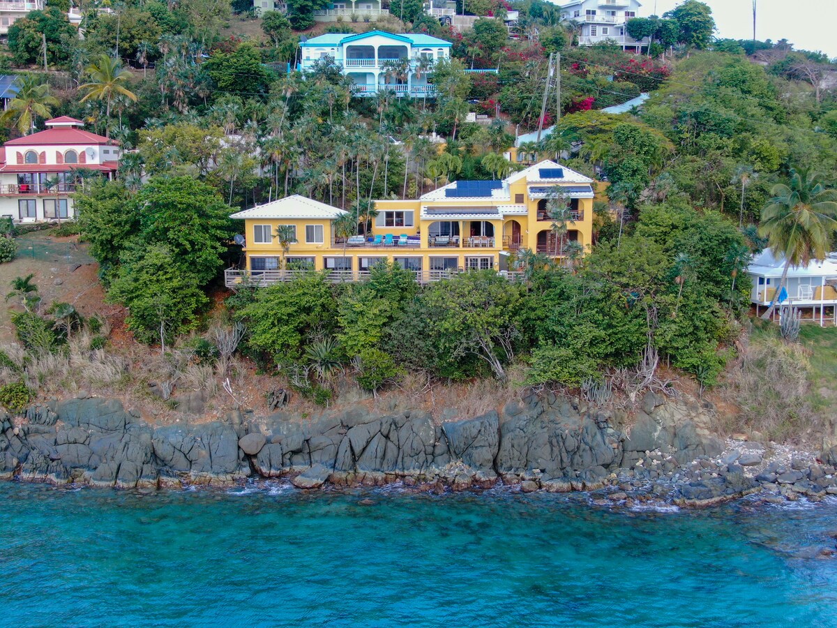 Sprostite se ob zvokih morskih valov v svojem zasebnem raju s panoramskim razgledom! Ta samostojna nastanitev ima 2 popolnoma novi zakonski postelji (King), 2 novi zakonski postelji (Full), 2 novi raztegljivi kavči za eno osebo, klimatizirane spalnice, kuhinjo s plinskim štedilnikom in hitrim brezžičnim internetom ter rezervni generator. Bivalni prostori, prežeti z vetrom, se odpirajo v osupljive razglede, ki segajo do otoka St. John! Sedemsedežni terenski avtomobil za nepozabne otoške pustolovščine. Primerno za otroke, kot nalašč za družine. Enostavno parkiranje in mirna zasebna lokacija. Izjemno centralna lokacija in neverjetna vrednost!