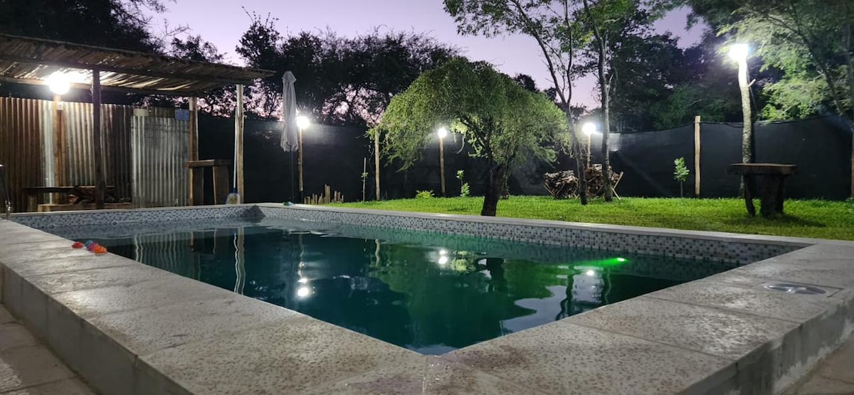Alojamiento para 12 personas, amplio parque de 2500m2 , totalmente comodo y seguro, 4 habitaciones con AA y tv digital hd, piscina, parrilla y fogonero; ubicado en barrio pescadores a 200mtrs del río. Ideal para descansar en familia.