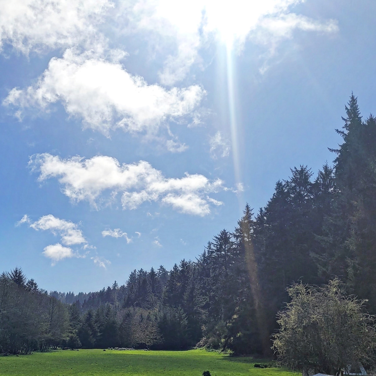 Beautiful new, spacious tent! Comes with queen-sized inflated mattress, mattress cover, and one quilt. Pillows and extra bedding up to you or available at laundry fee ($5/ea). In a fir-covered clearing with stunning views of the night sky, the meadow, and the forest beyond. At night, you can hear the ocean (1 mile away) roar. Sturdy fire pit; free firewood; firestarters. Hot water showers and flush toilets. No ambient light; no electricity at site. Starlink internet/wifi. We welcome the world.