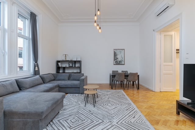 Izkusite, kako živeti v resničnem 150 let starem spomeniku s čudovitimi visokimi stropi (več kot 4,4 metra), pristnimi podrobnostmi v osrčju centra mesta. Hiša je bila prvotno palača in bančna hiša, ki jo je zasnovala ena najbolj znanih arhitektur na Madžarskem (Hild Jozsef) v klasičnem slogu. Od pomladi do jeseni lahko uživate v Budimpešti z ene največjih teras na tem območju s cvetjem in nekaj pijačami. Območje je osrednje, vendar mirno in mirno ponoči.