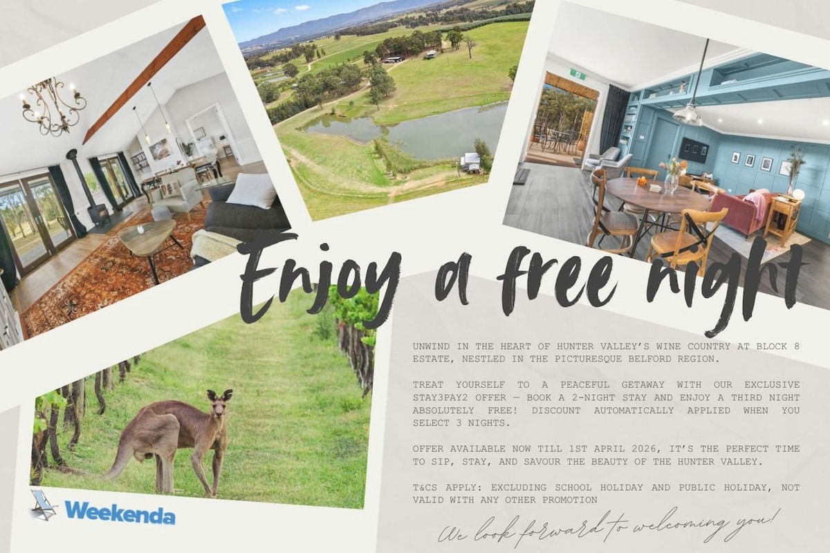 Nastanite se v zasebnem prenočišču. Izgubite se v svetu očarljivosti; osupljivo okolje brezčasnega šarma in izvrstne avstralske arhitekture. Ekskluzivno se nahaja na 5 parkirnih hektarjih, obdanih s konji in vinogradi v dolini Hunter. Mirno bivališče za sanje in ponovno povezovanje. Vse je v dosegu vinogradov, koncertov, plaž, jezer, gora in deževnih gozdov edinstveno v tej vodilni, vrhunski vinski regiji Avstralije. Zasebno in navdihujoče, Thulanathi (»bodite še vedno z nami«).