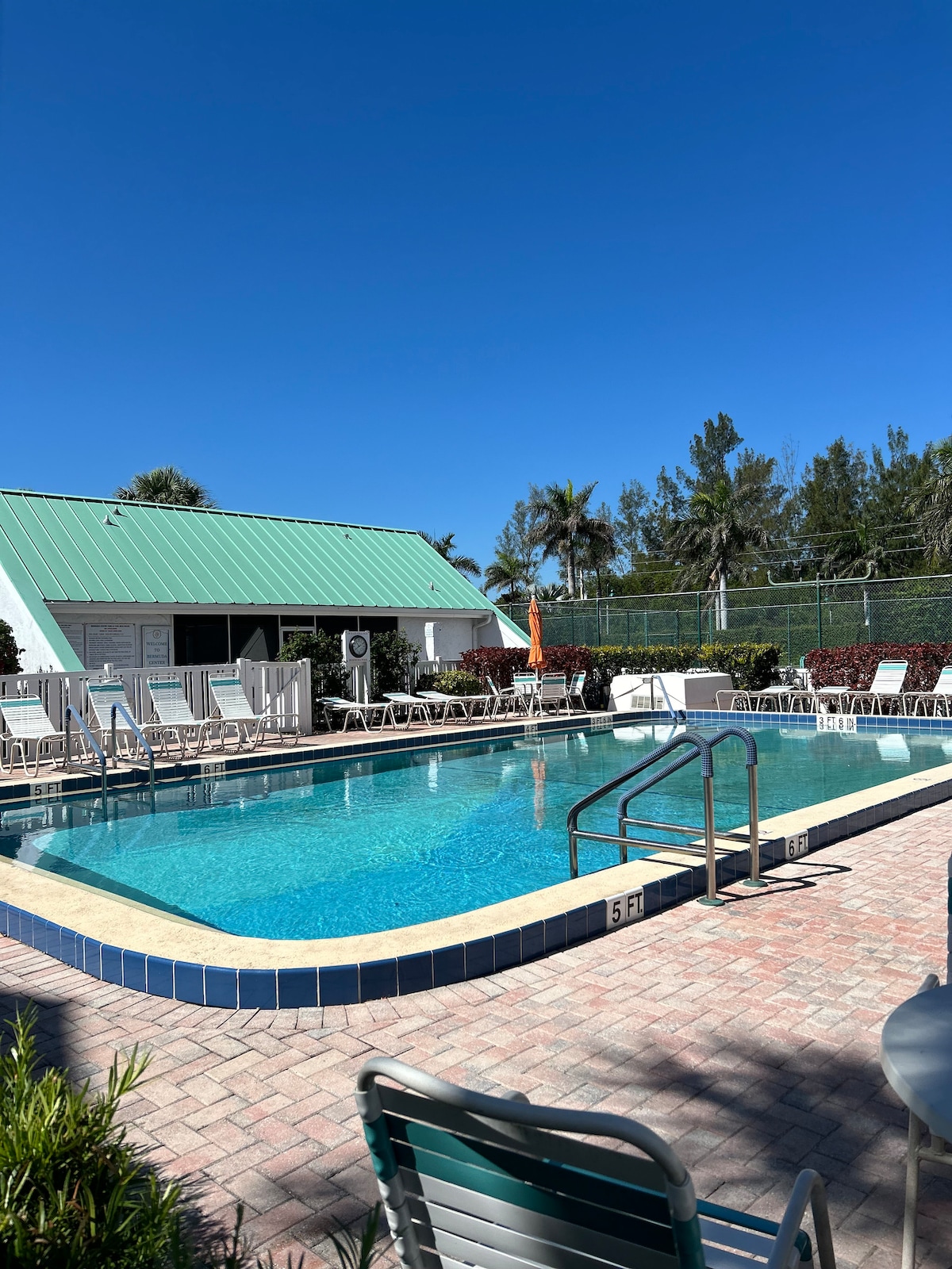 Perfect in all seasons, if you love a sandy beach & surf, fitness center, 4 sparkling pools. or great sunset views from your balcony. This sweet third floor condo overlooks a manicured par 3 golf course. Bocce, pickleball and tennis too. Gated community borders the beach on the east. Lush landscaping all around; water’s edge restaurants for dining onsite & nearby. Separate Queen Bedroom with a pullout sofa chair for child, fresh linens, well equipped kitchen, beach towels.