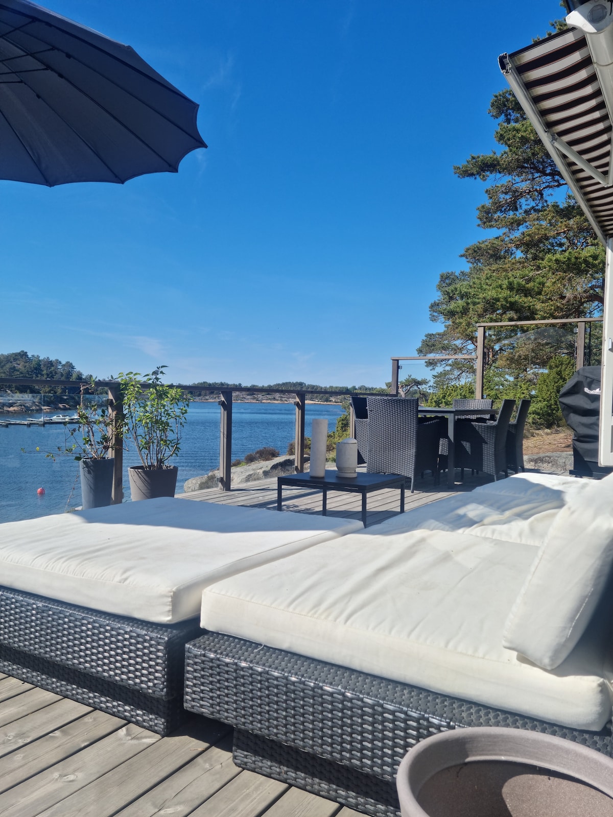 Doživite edinstveno kočo, ki meri več kot 1300 kvadratnih metrov v Hvalerju. Uživajte v soncu tik ob vodi, ne glede na to, ali želite sedeti na terasi, pomolu ali plaži. Raziščite sosesko z vodo in peš v čudoviti okolici. Gostom so na voljo kajaki, deske za veslanje (SUP) in čoln na vesla. Igrajte odbojko na svoji plaži, večerjajte v enem od jedilnic, preberite knjigo na pomolu ali skočite iz potapljaškega stolpa in plavajte za vožnjo. Preživite čas z družino, se sprostite in uživajte v sproščujočih dneh.