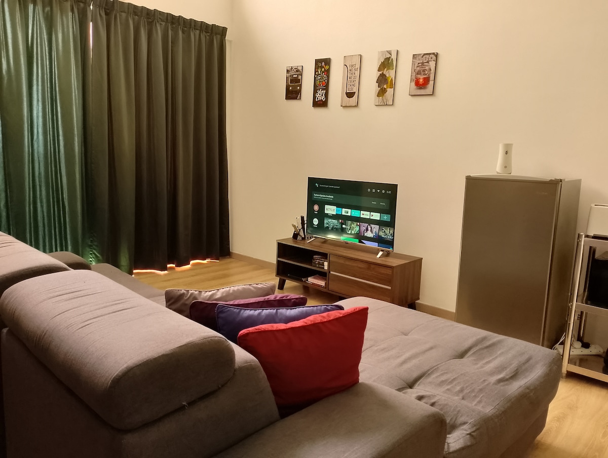 We sanitized and cleaned after every guests, your safety and health are our main priority. Book with us with confidence and enjoy the NETFLIX, SPOTIFY & 200MBPS HIGH SPEED INTERNET. Experience the minimalist lifestyle and enjoy the stay with all the facilities provided. 3 bedrooms. 2 queen bed and 1 king bed with 2 bathroom. 2 indoor carparks. Pool and gym provided. Walking distance to shop nearby Speedmart, Elew Mart, 7-Eleven and mamak shop. 30 minutes to airport and 15 minutes to I-City.