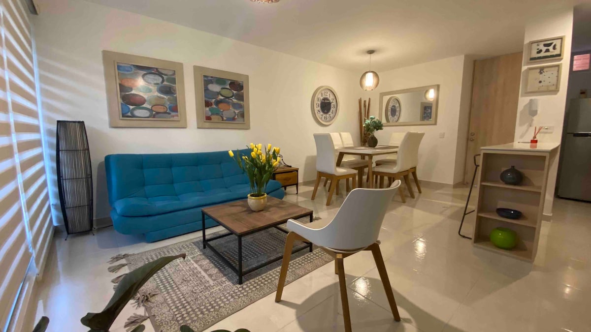 To čudovito stanovanje se nahaja v privilegiranem predelu mesta, ki je blizu glavnih nakupovalnih središč, restavracij, stadiona Manuel Murillo Toro 🏟️ in več pubov. Prijetno bivanje z družino ali prijatelji. Stanovanje je profesionalno zasnovano s sodobnim pohištvom, sodobnimi napravami in hitrim omrežjem Wi-Fi za udobno delo.