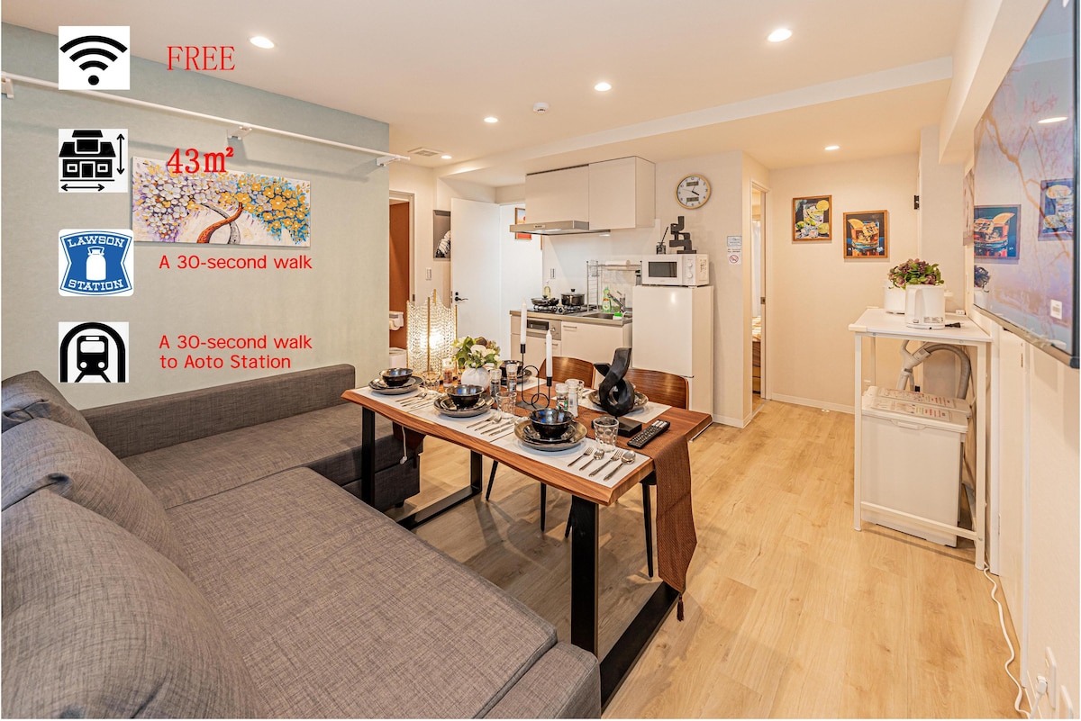 🏠 Pregled in posebnosti vnosa ★ Dobrodošli v našem udobnem stanovanju v japonskem slogu, ki se nahaja v okrožju Aoto v okrožju Katsushika v Tokiu. ★ 43 ㎡, 2LDK (2 spalnici + dnevna soba/jedilnica) – primerno za največ 5 gostov. ★ Stanovanje se nahaja na naslovu Aoto 3-37-6, v 4. nadstropju z neposrednim dostopom do dvigala. To je zelo priročno za goste z veliko prtljage, družine in starejše popotnike. ★ Najbližja postaja, Keisei Aoto, je oddaljena le 1 minuto hoje – izjemno priročno za ogled Tokia.