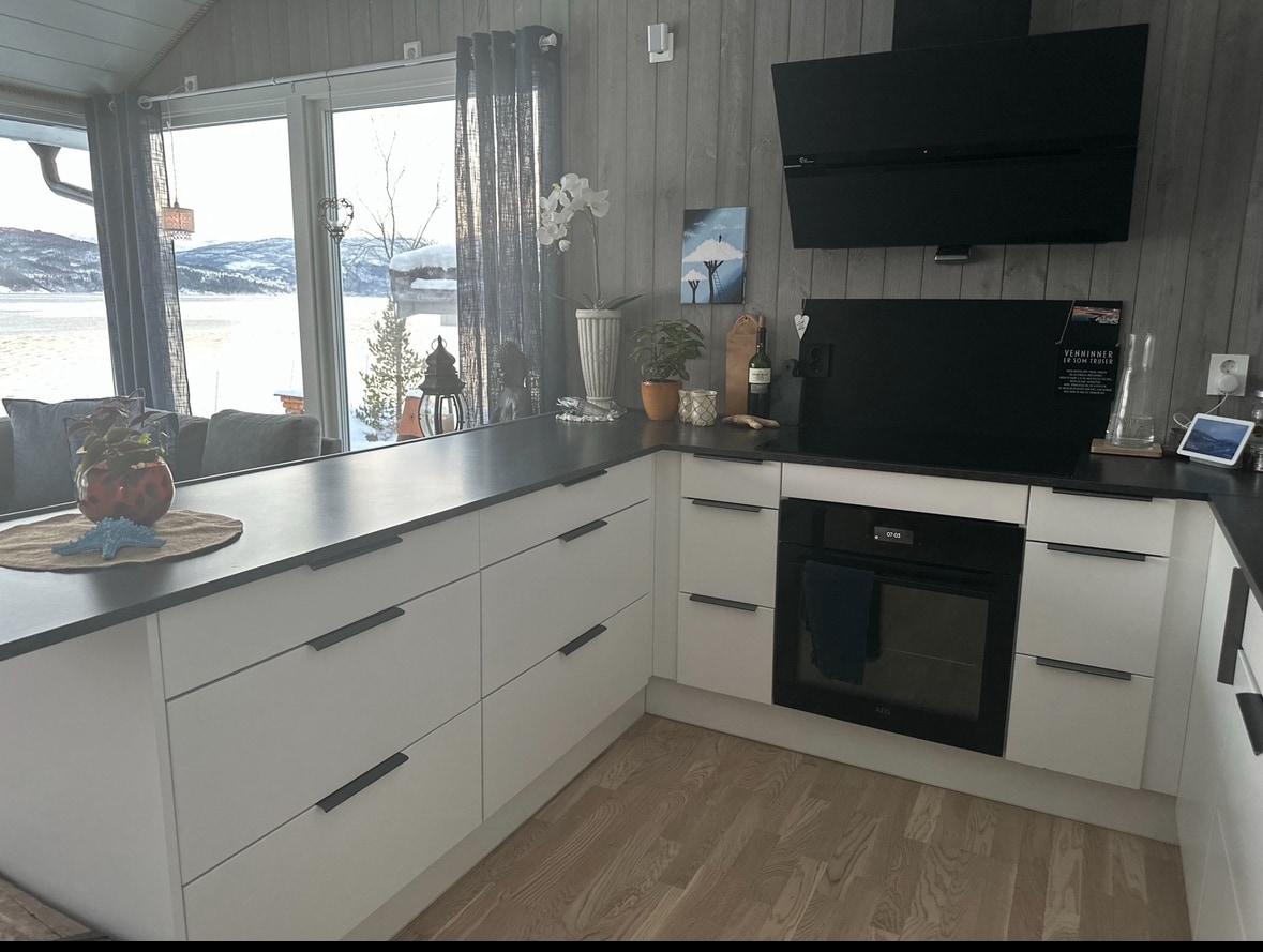 We are the proud owners of this very special cabin located right at the seafront. Modern fully equipped kitchen and stylish living room with panoramic views through the large windows facing the sea. The cabin is fully equipped with everything you will need and the bathroom is spacious with water closet and large shower. Washing machine/tumbling dryer and dishwasher is also available and can be used freely.