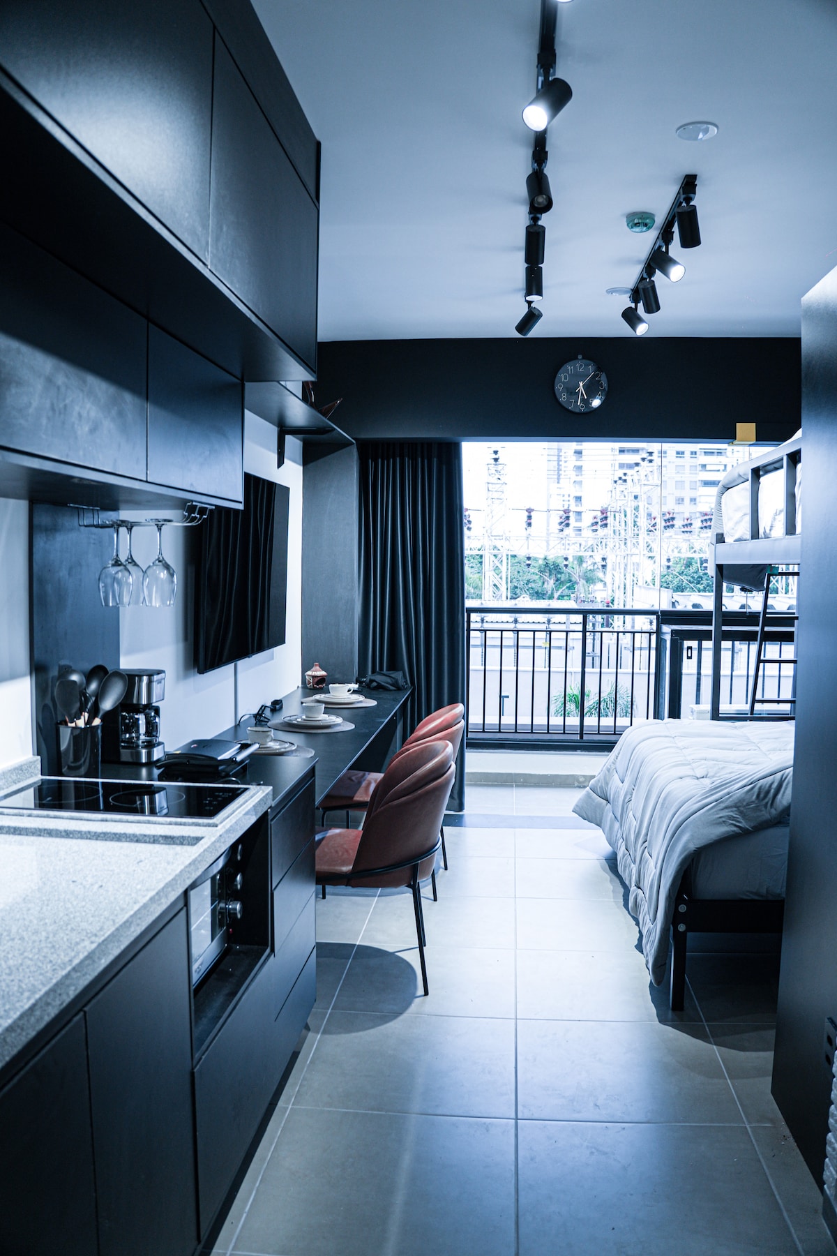 Studio se nahaja v 31. nadstropju najvišje stavbe v središču, s sodobno in gostoljubno zasnovo ter impresivnim razgledom na mesto. Skozi okno lahko občudujete dolino Anhangabaú, zgodovinsko središče, antene Av. Paulista: ena najlepših pokrajin v São Paulu. To je stavba, kjer se nahaja SampaSky in je mogoče hoditi do glavnih znamenitosti centra. Ima klimatsko napravo, 55-palčni televizor z aplikacijami, kuhinjo, opremljeno z osnovnimi pripomočki, kuhalno ploščo (1 usta), mikrovalovno pečico in minibar.