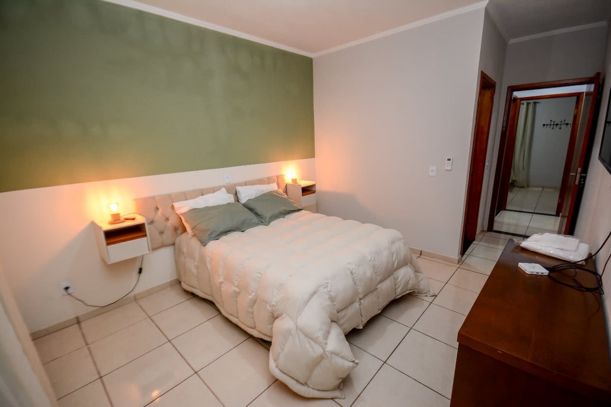 2 spalnici 3 kopalnice – hiša Borborema, SP 🚨🚨ALUGO RANCHO 🚨🚨 Village Tietê condominium 2 en-suites Klimatska naprava 3 kopalnice Gurmanska kabelska televizija Wi-Fi Plavalni bazen z masažno kadjo Recepcija non stop Nočni čuvaj Dostop do reke Tietê Trgovina z živili in pekarna v lastniškem stanovanju Quadras vôlei e beach tennis Suita 1 : 1 z zakonsko posteljo 1 enojna postelja, suita 2 : 1 zakonska postelja 1 dvojna postelja 1 dvojna postelja 2 enojni vzmetnici 🚨🚨 POZOR 🚨🚨Posteljnine ne dobavljamo Ne nudimo kopalk