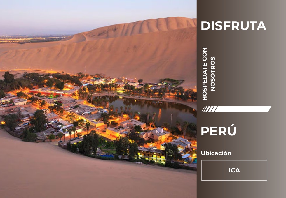 Pobegnite v osrčje oaze v tej hiši z zasebnim in kaljenim bazenom! Na novo zgrajeno! Od čarobne Huacachine in njenih sipin smo oddaljeni le 3 minute. Je kot nalašč za družine, pare ali prijatelje, ki pridejo na pustolovščino, počitek ali odkrivajo čar puščave. Sprostite se v Nuestra Piscina Temperada! z udobnim in udobnim okoljem, ki je zasnovano tako, da se boste počutili kot doma in opremljeno kuhinjo. Rezervirajte 3 nočitve ali več in samodejno boste dostopali do 10% popusta na bivanje.