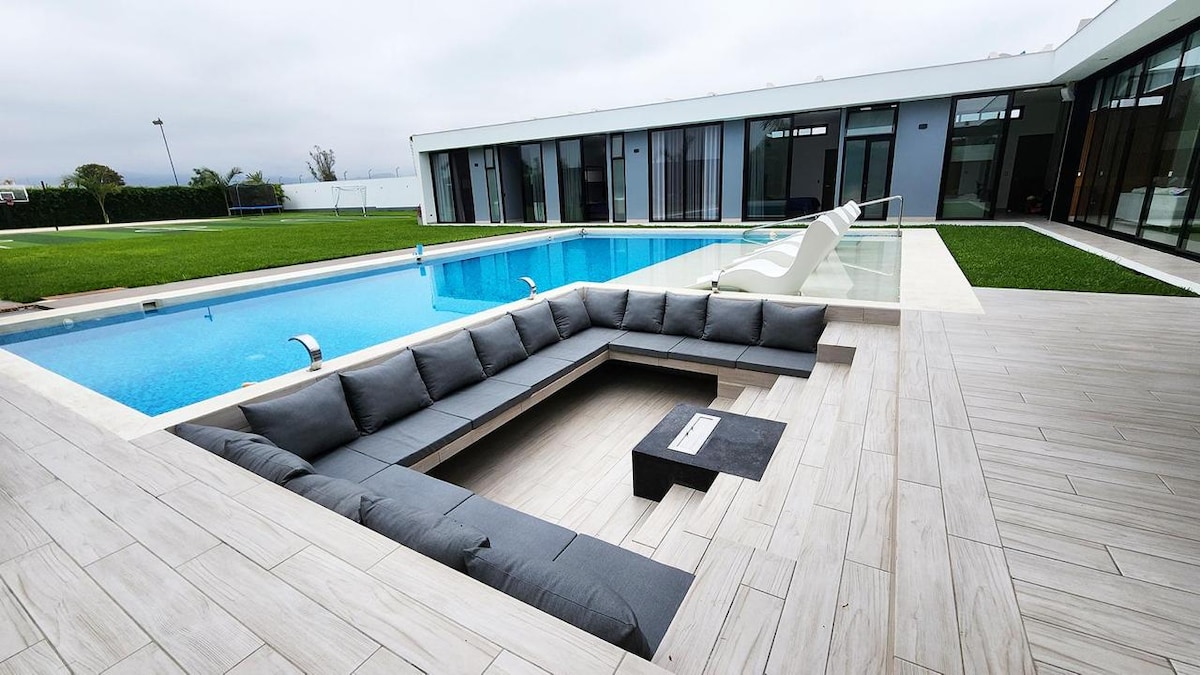 Casa de lujo. 5 habitaciones + 1 habitación de servicio. Piscina temperada y jacuzzi terapéutico. Wifi toda la casa ( lista para home office/ school) Sistema de sonido por zonas ( Bose). Solo se alquila a familias y es Ideal para familias grandes.