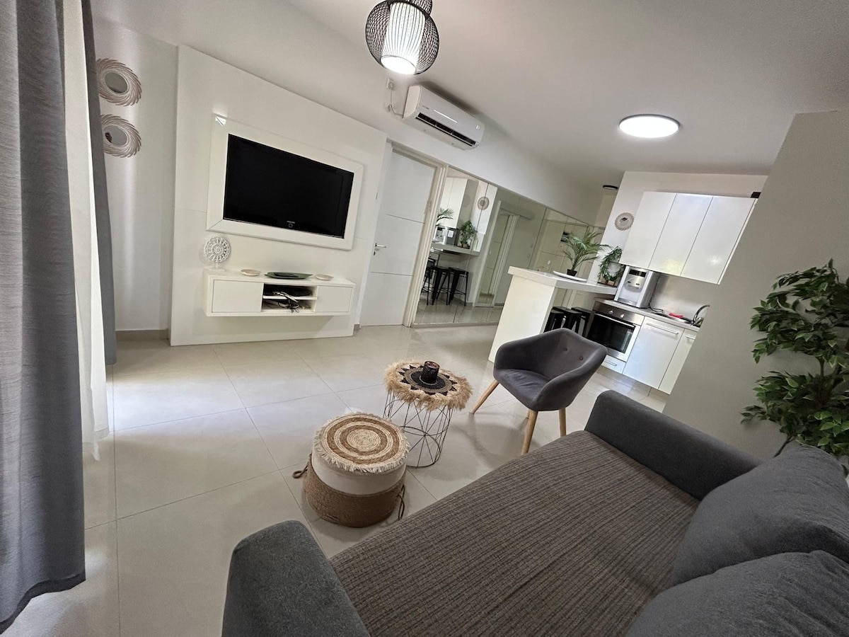 Lepo prenovljeno in prostorno dvosobno stanovanje, ki se prikladno nahaja v osrčju Eilat z le 15 min hoje do plaže, nakupovalnega središča in bari. Stanovanje je okusno opremljeno s popolnoma opremljeno kuhinjo in gospodinjskimi aparati, ki ustrezajo vašim potrebam med bivanjem v prenočišču, daleč od doma. Uživajte v čudovitih sončnih zahodih na prostranem balkonu s širokim odprtim pogledom na morje in goro, ki vam bo odpihnil sapo. Veseli smo, da vas gostimo v našem prostoru!