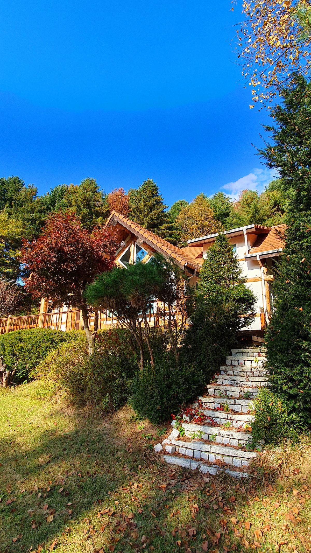 Zasebna enodružinska hiša v obliki vile za samo eno edinstveno ekipo, ki se nenehno nadgrajuje z okolju prijaznim nadgradnjo. Gre za »nadgradnjo« z odlično vrednostjo in ceno. Nahaja se v kraju Hanam-si, Gyeonggi-do, s priročnim prevozom in različnimi potrebščinami (žar, klubske karaoke, gledališče, kampiranje itd.) ter v vili (120 pyeong zemlje, 45 pyeong), kjer se koncept spreminja glede na sezono 4. To je prostor za skupino 5-6 oseb, kot so družina, prijatelji in znanci, ki je poln čustev. Sprejemamo samo eno ekipo na dan, zato prejmemo veliko priznanj kot najboljšega kraja za naše goste. To je edinstvena namestitev, ki jo še naprej nadgrajujemo v okolju prijazno reciklirano hišo. Poleg tega je v sosednji stavbi na voljo tudi 24-urna trgovina, v bližini pa je tudi veliko parkirno mesto.