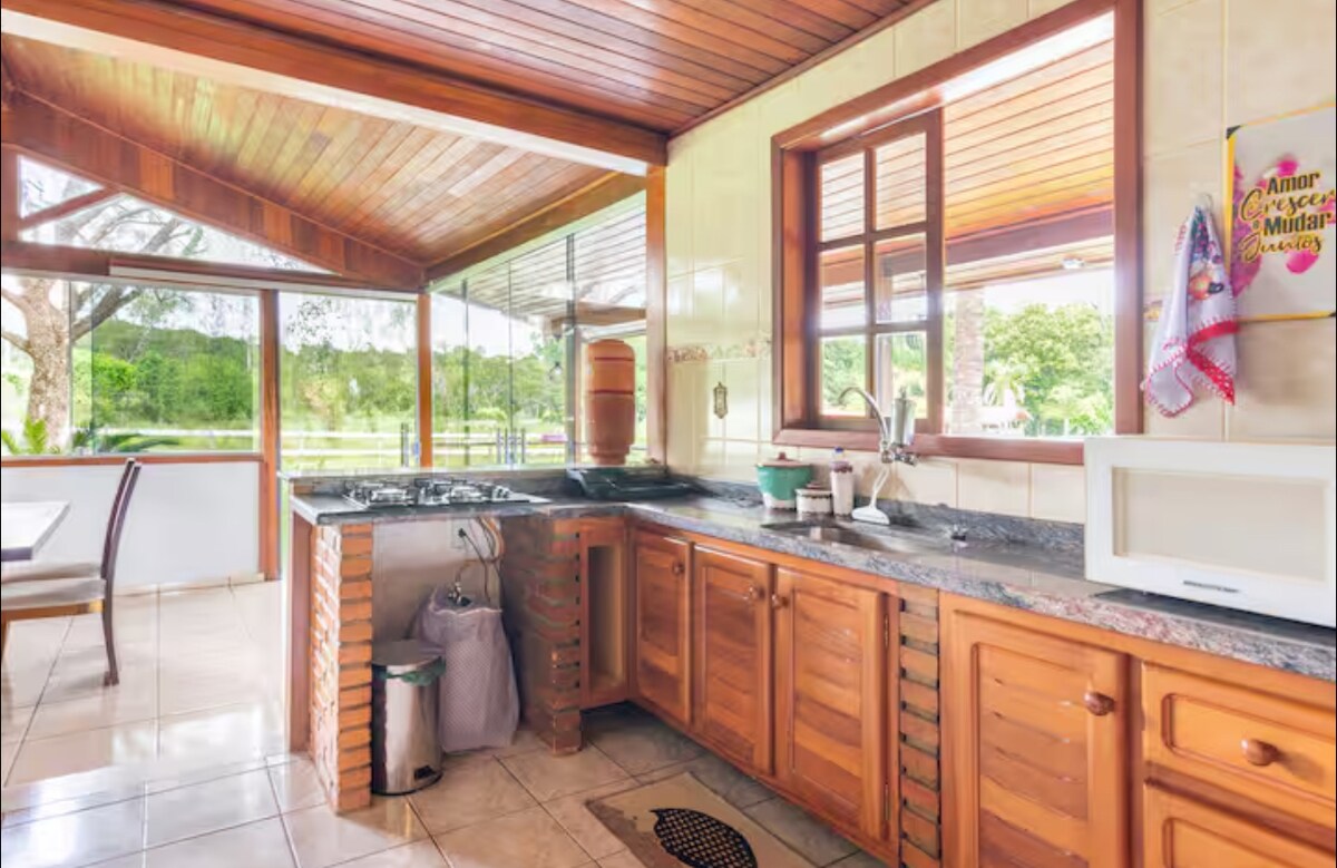 Prostor za sprostitev z družino in prijatelji. Tukaj, kjer se dogaja Maisha (življenje) Vedno se spomnite spokojnosti tega kraja, ptičjega petja, čudovitega sončnega zahoda, neverjetnega razgleda na Pedra Grande, kulturne in ekološke dediščine Igarapeja in tistega, kar je najbolj očarljivo: naših prijateljev tukanov, ki vedno priletijo, da vas pozdravijo in vam sporočijo, da ste tam dobrodošli. V varnem okolju, s 24/7 varovanjem, nadzornimi kamerami in patruljami. Aaproveite MAISHA. Prinesite ventilator.
