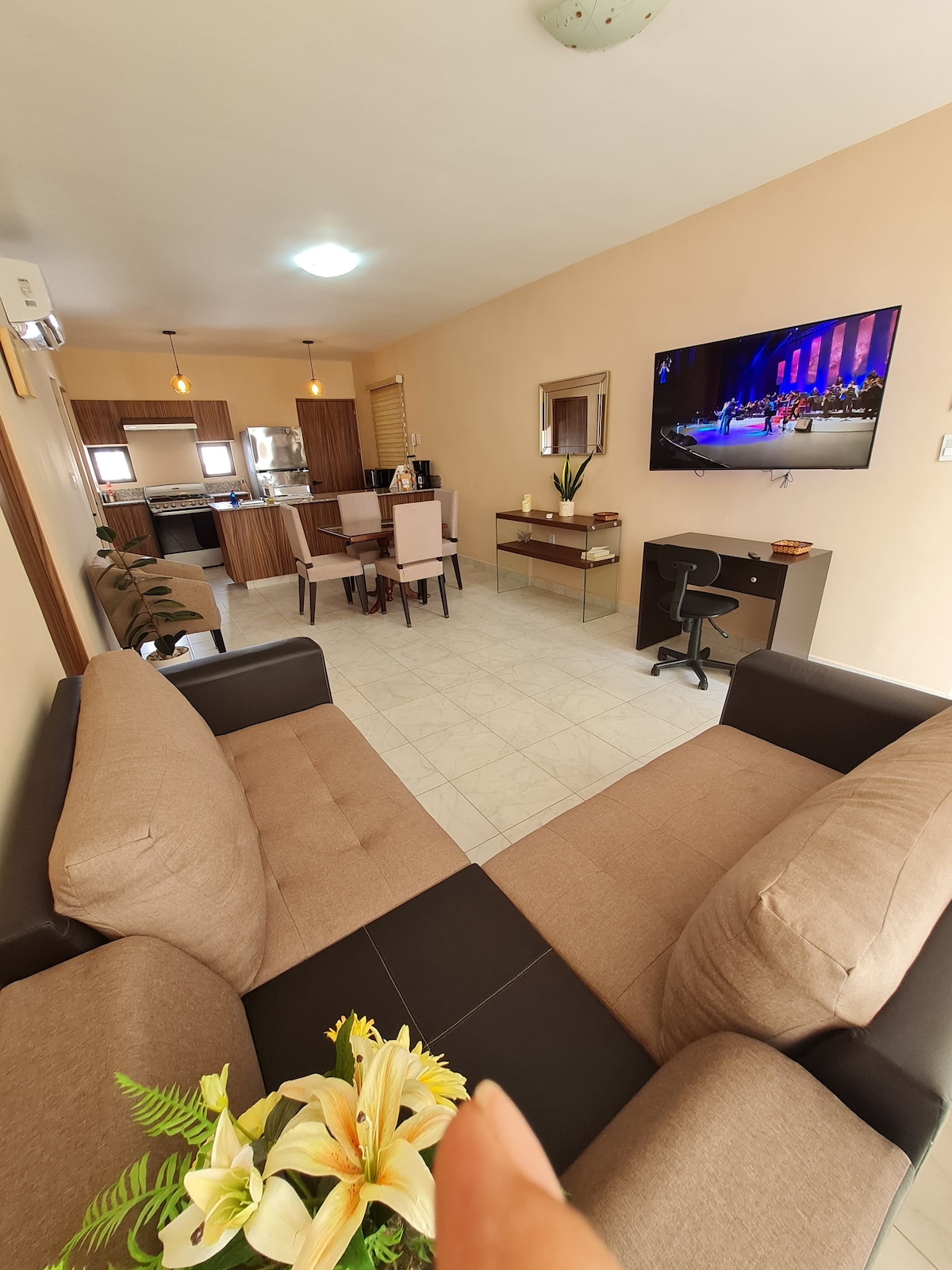 Na novo prenovljeno stanovanje, ki je v celoti opremljeno z vso opremo. Ogromna spalnica z ogrevano zakonsko posteljo, dnevna soba z udobnim raztegljivim kavčem, granitni bar za obedovanje, kuhinja z vsem, kar potrebujete za kuhanje, Wi-Fi, pametna televizija z računom Netflix za ekskluzivno uporabo. Brezplačna kava, čaj in voda Odlična lokacija 5 minut od Plaza Américas, Plaza Andamar in Plaza Vela. 15 minut hoje od obalnega območja Boca del Río.