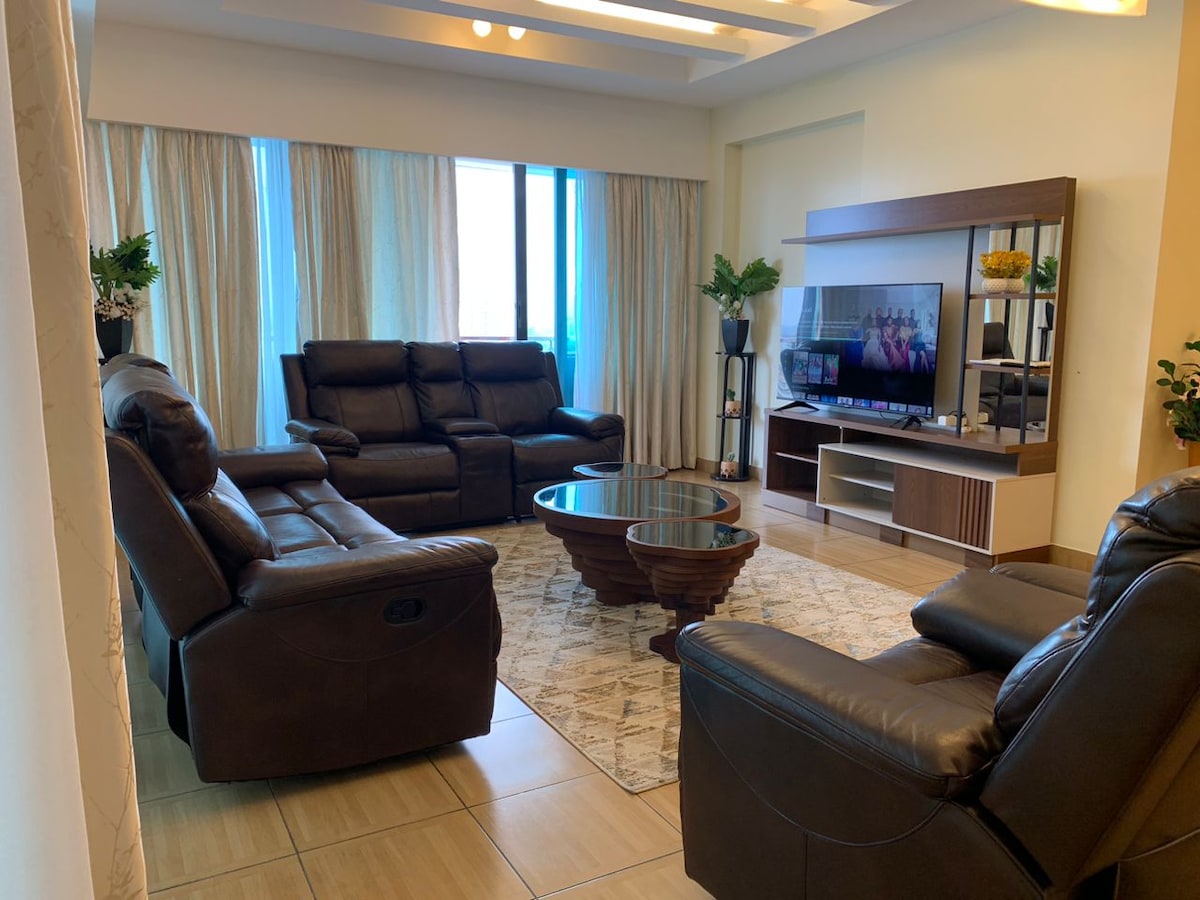Dobrodošli v svojem drugem domu! To čudovito prostorno stanovanje 3BR ponuja popolno mešanico udobja, sloga in priročnosti. Idealno za družine, skupine ali poslovne potnike. To stanovanje se nahaja v mirni, varni soseski z enostavnim dostopom do glavnih znamenitosti in prometnih poti v mestu ter je odlično izhodišče za vaše bivanje v Dar es Salaamu. Rezervirajte zdaj in izkusite prostor, udobje in nepozabne razglede.