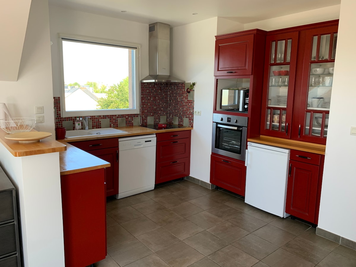 Zelo mirno stanovanjsko območje, obrnjeno proti jugozahodu, v bližini pristanišča, središča mesta in njegovih trgovin. 10 km od morja. Varno parkiranje z električnimi vrati. Opremljen je z vlakni.