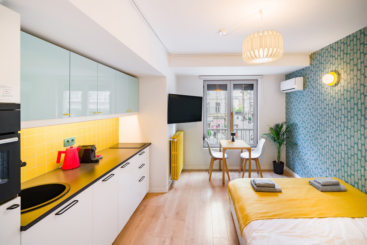 Stay in the heart of Bucharest in this recently renovated studio with an amazing view over Universitate Square and the iconic Intercontinental Hotel. Enjoy a cozy private balcony and a small but fully equipped kitchen. Universitate metro station is right in front of the building, while the vibrant Old Town is just a 1-minute walk away. Restaurants, terraces, ATM and a 24/7 market are steps away. Hosted by an experienced host with over 7 years of hospitality experience.
