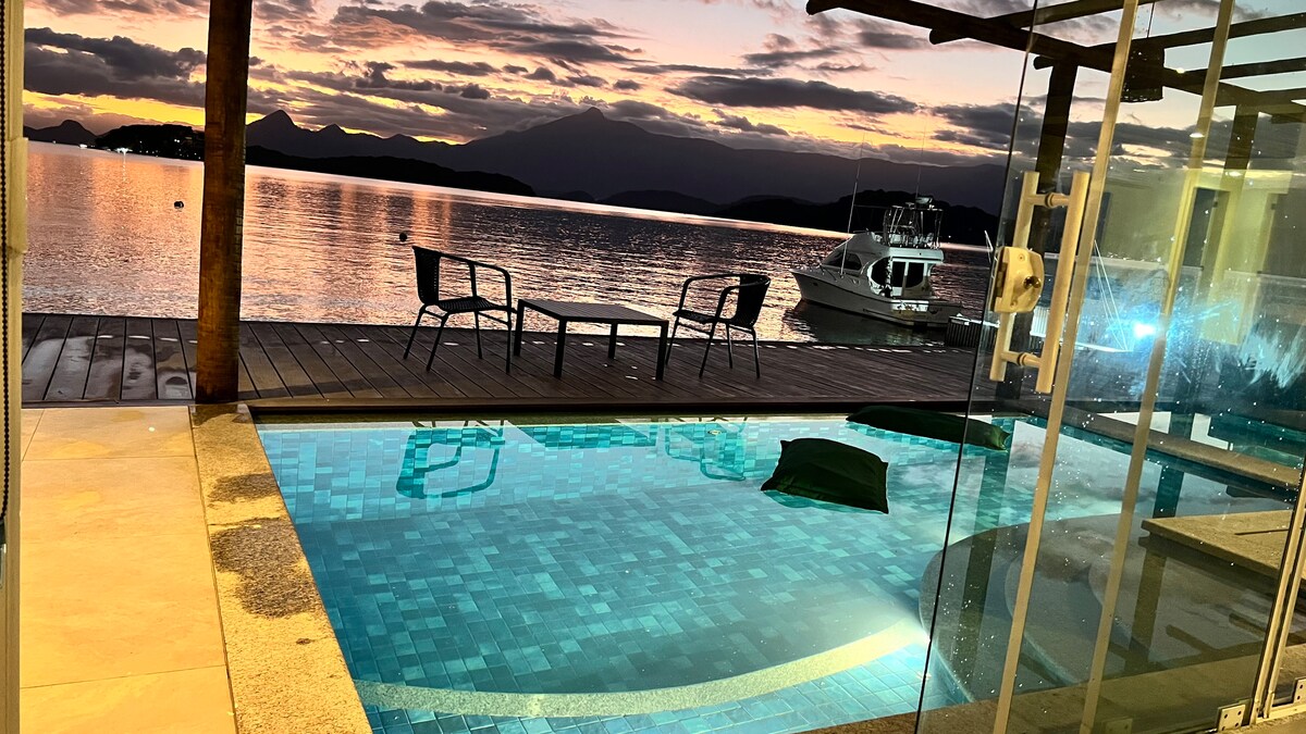 Luksuzno predelano stanovanje s panoramskim razgledom na ocean v Angra dos Reisu. Sodobno okolje, udobno medetažno nadstropje in kad z neverjetnim razgledom – kot nalašč za pare. Velika razlika: ekskluzivna vožnja z gliserjem z gostiteljem 🚤 Raziščite idilične otoke in skrite plaže ter uživajte v edinstvenem doživetju. Gostje imajo prednost pri načrtovanju. Rezervirajte zdaj in poskrbite, da bo vaše potovanje nepozabno.