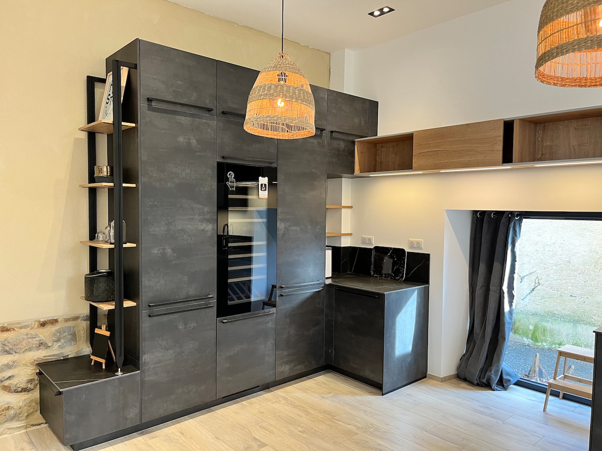 V bližini središča mesta je to očarljivo stanovanje T1 s 23 m2 oddaljeno 3 minute hoje od železniške postaje, gradu in pekarne. V tej stari delavnici vas v celoti prenovljeni in popolnoma opremljeni za bivanje v Châteaubriantu v popolni avtonomiji. Zelo svetla nastanitev v pritličju s pogledom na velik vrt vam bo omogočila, da boste uživali v sončnih dneh in mirno bivali v Châteaubriantu... Na voljo so kolesarji, dvorišče in garaža