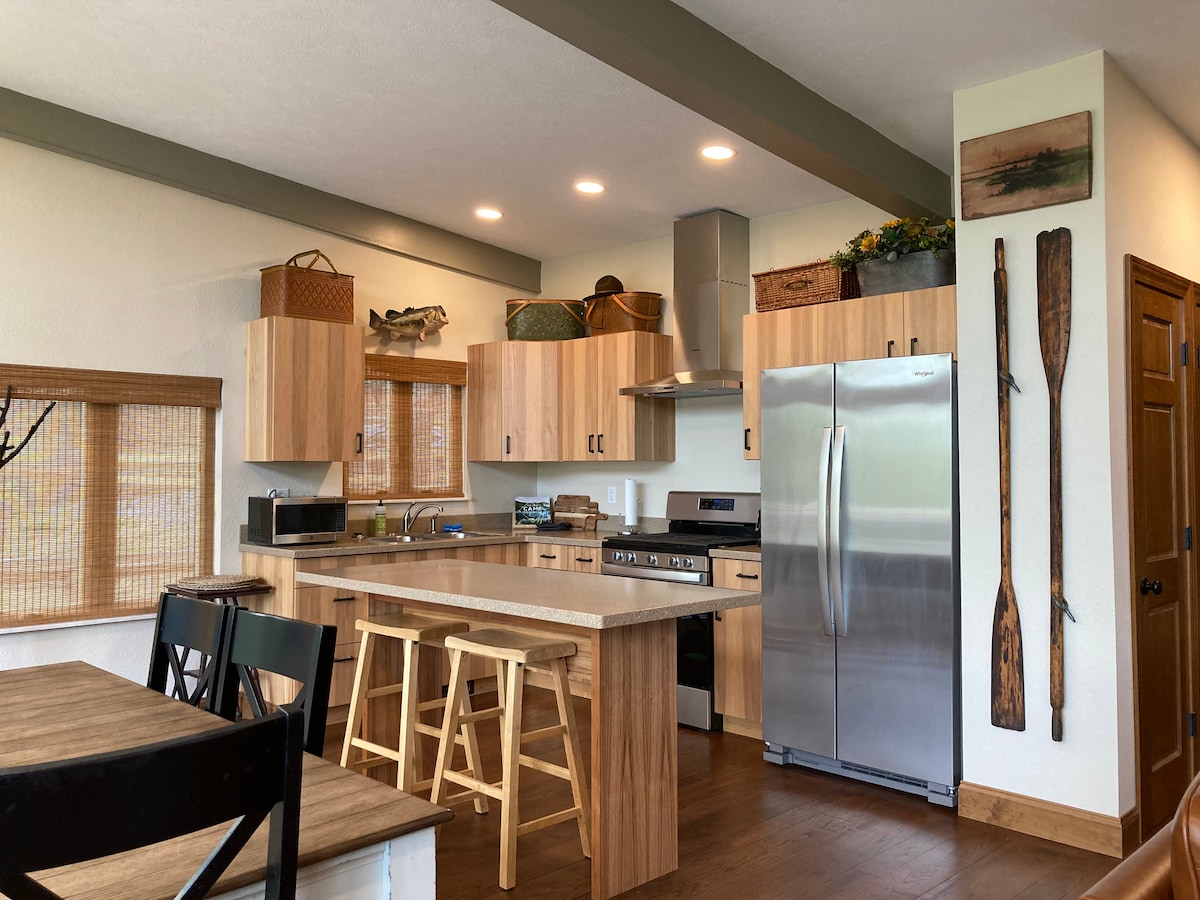 Ponujamo vam zasebni vhod s klančino, zasebno teraso, skupno pokrito verando, plinski kamin, kabelsko televizijo z dvema televizorjema, majhno kuhinjo, pralnim/sušilnim strojem in čudovitim razgledom. Naš apartma je tudi čudovito delo od doma. Ponujamo vam hiter zanesljiv Wi-Fi s pisarniškimi in kopirnimi centri v petih minutah od našega apartmaja. Apartma je na enem nivoju, vsa vrata pa so široka 36 palcev za dostopnost.