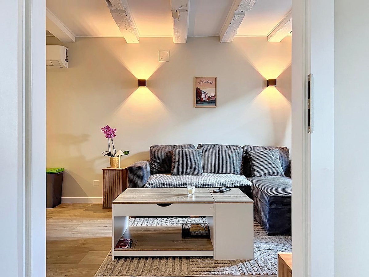 Odkrijte ta novi studio, ki je popolnoma opremljen in v bližini številnih zanimivosti ( katedrala, središče mesta, Vieille France, Neustadt, univerzitetni kampus, Evropski parlament, Wacken, bazeni, muzeji, nakupovalni centri, železniška postaja, bolnišnice itd.). Božična tržnica v novembru. Priročna, funkcionalna, zelo dobra lokacija, vse, kar potrebujete za prosti čas ali poslovno bivanje. Opremljen z delovnim kompletom na daljavo: pisalna miza/Wi-Fi ⚠ Kajenje ni dovoljeno. ⚠ Zabave niso dovoljene