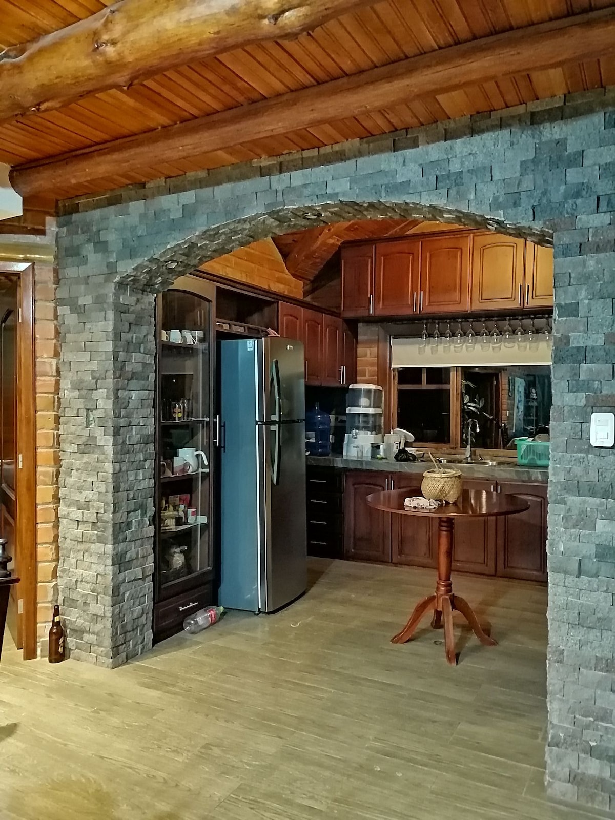 Alojamiento de madera de pino rústico y piedras Naturales con Tres habitaciones más un Altillo con Sofa cama . en cada habitacion disponemos de Una cama matrimonial y dos individuales y Baños Privados total. (7 camas) , una casa completa con cocina bien equipada, comedor, sala de estar con chimenea interior y exterior y con un mirador panorámico hacia el Volcan Mama Cotacachi. Vía - Cotacachi por la Pana- Comunidad La Calera, Cabaña Puñushiki Kalera Lodge Cotacachi- Imbabura- Ecuador