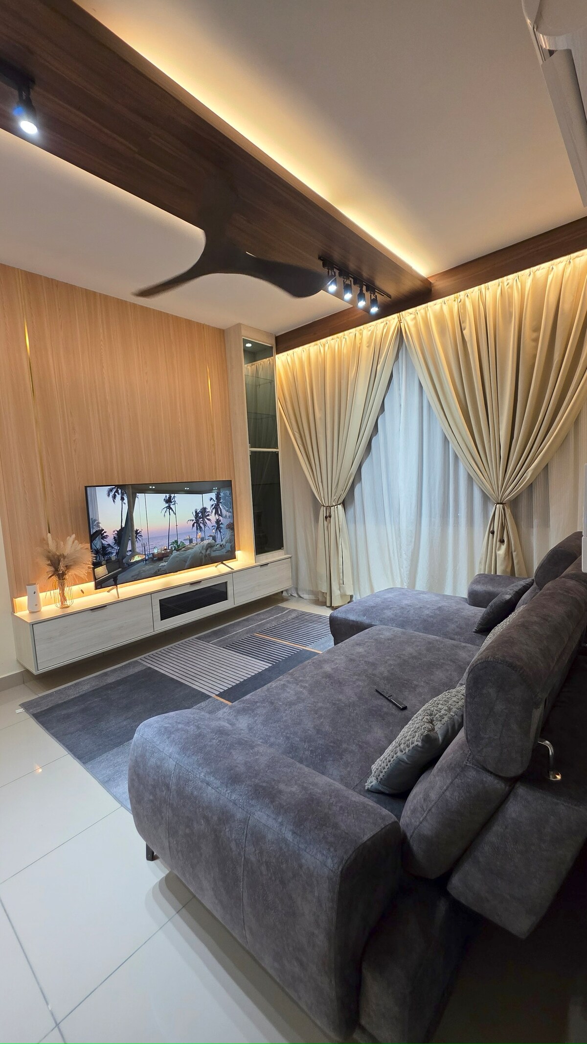 StarSuiteAC – Luxury Stay Above the Clouds! A luxuriously designed duplex on high floor, offering a breathtaking cloud-carpet view of the KL skyline. Relax under the galaxy-like starry ceiling and experience a staycation like no other! Enjoy a soundproof karaoke room, billiard & air hockey, and a home cinema with surround sound for a true movie experience. Facilities : kitchen, fridge, microwave, rice cooker, air-fryer, water filter, washing machine (with dryer), massage chair, etc.