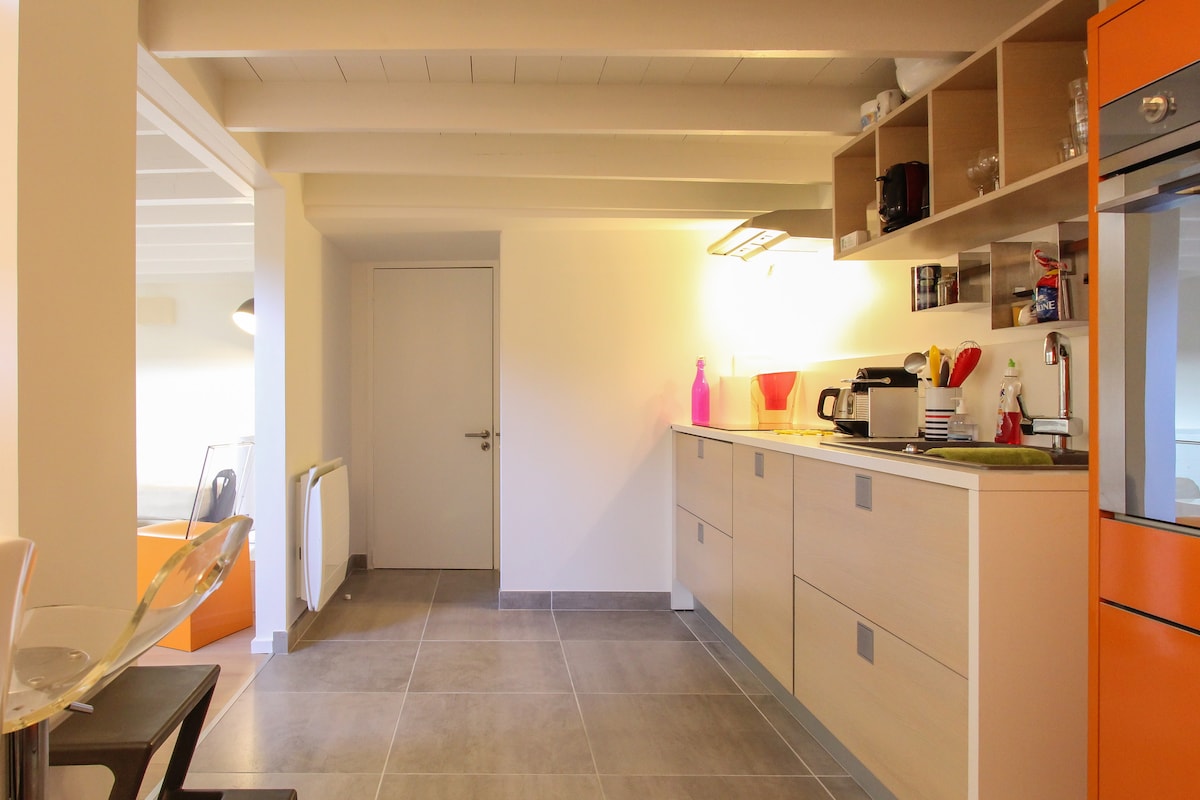 Očarljivo predelano stanovanje, sodobno in udobno, z oceno 3 zvezdice Meublé de Tourisme Zelo enostaven in varen sprejem koles in motornih koles na dvorišču Dostop do območja za sprostitev (viseči vrt, ogrevan notranji bazen, masažna kad) v poletni sezoni od maja do septembra L'Atelier K je nekdanja delavnica, preurejena v predelana stanovanja. Izjemna lokacija v zgodovinskem središču Bloisa, v središču mesta, na enem nadstropju na velikem zasebnem dvorišču, zelo mirno in svetlo, s pogledom na grad
