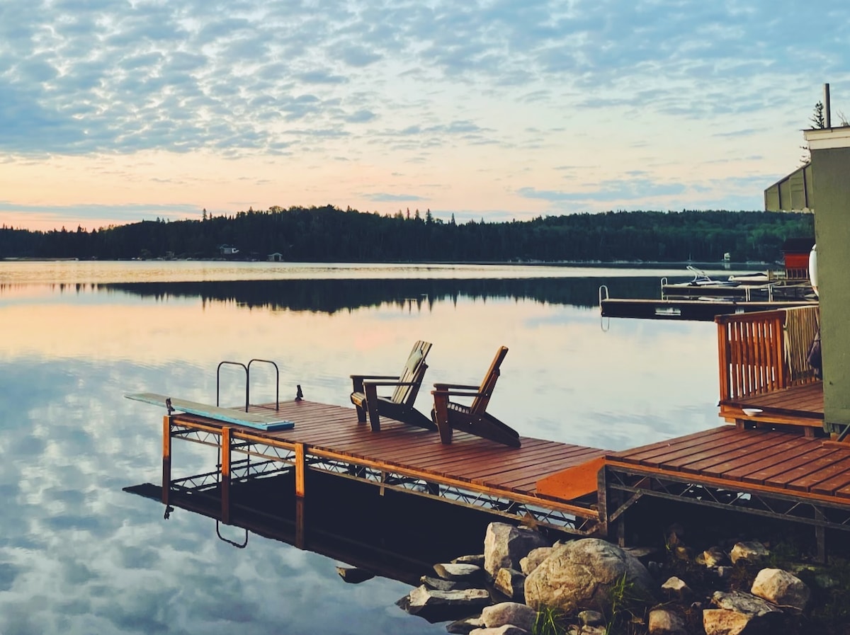 Naš zaliv je miren in primeren za družine z zasebno plažo, pristaniščem za čolne in teraso za sončenje. Naša hiška na deželi sprejme več kot 16 gostov in je opremljena z lesenim kaminom, masažno kadjo, več televizorji in biljardno mizo. Za vsakogar se najde nekaj! Pridružite se nam v zimskih mesecih za popoln pobeg iz mesta in uživajte v tem, kar ponuja pokrajinski park Whiteshell: snežna pot, ribolov na ledu, smučarski hrib, ki je oddaljen približno 15 minut. Komaj čakamo, da vas sprejmemo naslednjo priložnost