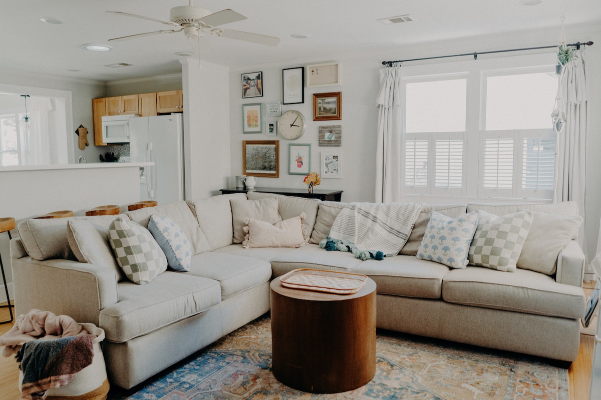 Elegantno sodobno prenočišče v soseski Cabbagetown/Reynoldstown. Na eni strani dvostanovanjskega objekta boste v najbolj dostopni soseski v Atlanti. Kratek sprehod do mest Beltline, Muchacho, Publix, Atlanta Dairies, Krog Street Market, AMC, Carroll Street in drugih restavracij, barov in kavarn. Vrnite se domov na izjemno udobno in popolnoma novo pohištvo (od konca leta 2020), 50-palčni pametni televizor s super hitrim omrežjem Wi-Fi. Za kuhanje je potrebnih veliko osnovnih kuhinjskih pripomočkov, vključno z aparatom Keurig. Na voljo je brezplačno parkiranje na ulici