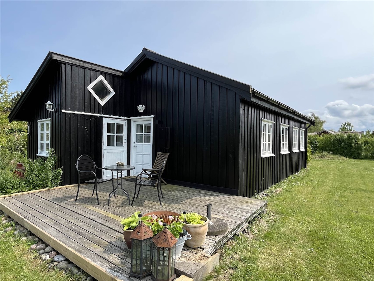 Roomy black loghouse with white windows and classic Danish design furniture. Master bedroom and 2 chambers all with comfortable beds. Renovated and updated in 2020-2025 incl. kitchen and bathroom. Nice garden with lawn ideal for croquet or even golf training (putting)!. Dishwasher and TV. Wi Fi. Nespresso Pixel coffee machine for capsules. Outdoor facilities for cleaning of newly caught fish.