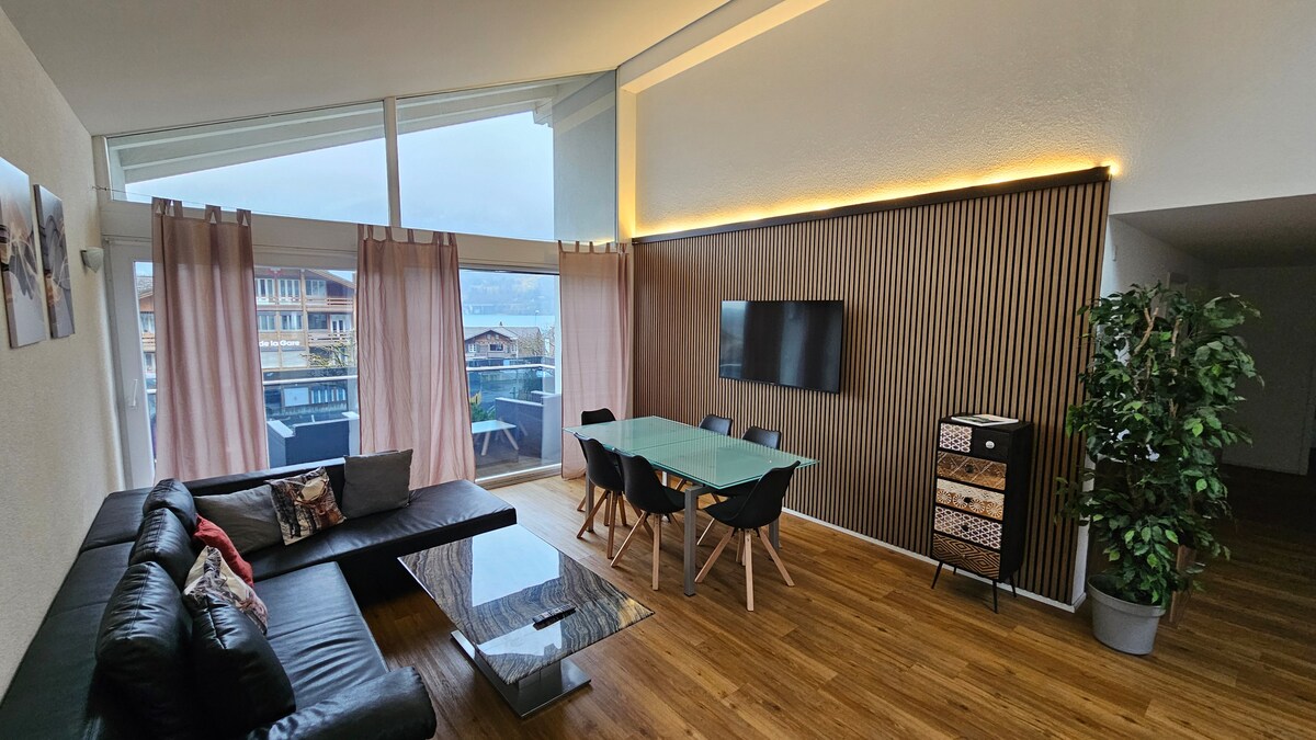 ✨ Alpine Luxury & Whirlpool: Your Oasis Above Lake Brienz! ✓ Whirlpool: 🛀 Daily 1.5h private time slot (reservation required) ✓ Location: 🏔️ Ideal hub for Brienz, Giessbach Falls & Interlaken ✓ Extras: 🧺 Free use of washing machine & tumble dryer ✓ Entertainment: 📺 65" Smart TV (Netflix & 300+ channels) ✓ Fireplace: 🔥 Cozy evenings by the fire (wood included) ✓ Kitchen: 🍳 Fully equipped incl. dishwasher & Nespresso ☆☆☆☆☆ "The view from the private balcony is simply priceless!"