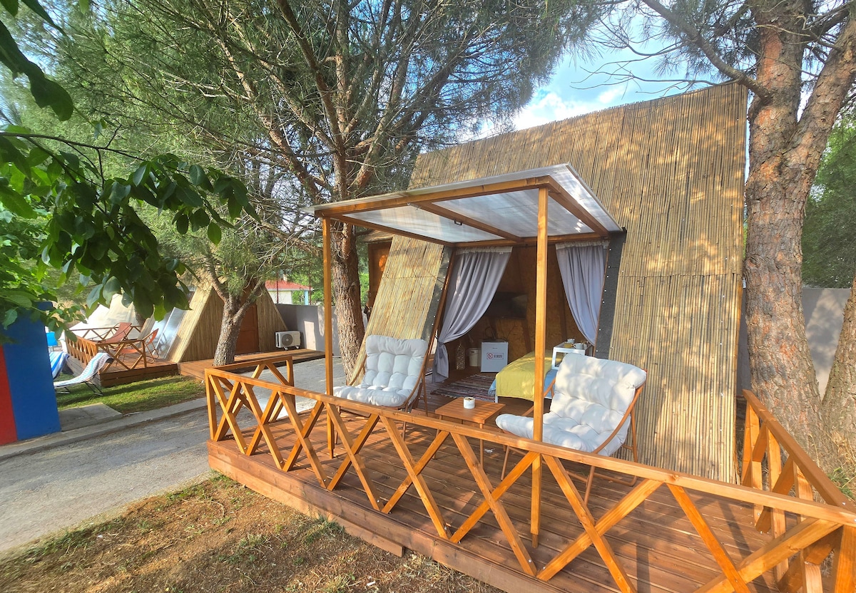 Tα ξύλινα καταλύματα, στο Ioannina Camping προσφέρουν μια μοναδική εμπειρία διαμονής, συνδυάζοντας την άνεση με την επαφή με τη φύση. Με 18 τετραγωνικά μέτρα ζεστού και φιλόξενου χώρου, τα καταλύματα αυτά είναι ιδανικά για μια αξέχαστη απόδραση.