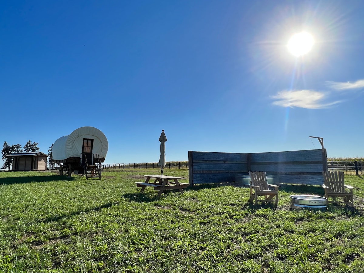 *Novo za 2023* Ena noč na Sunset Hills Bison Ranch je vse, kar morate vedeti, zakaj ga imenujemo Sunset Hills! ČUDOVITO! Ta vagon bo zagotovil popoln romantičen oddih, dekliški večer ali družinski večer! Ostanite tam, kjer se bizon sprehaja. Vsak vagon vključuje zakonsko posteljo, pograd, mizo na kolesih, hladilnik, mikrovalovno pečico, aparat za kavo, opekač kruha in razkošno posteljnino. To ne bi bilo glamping brez ogrevanja in klimatske naprave, zaklepnih vhodnih vrat in zasebne kopalnice! V sklopu namestitve sta dva vagona in koča. 1883 Dream