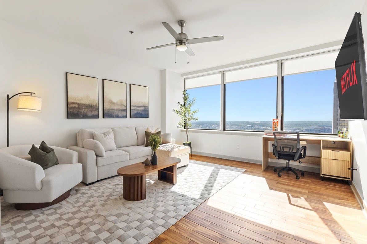 Say hello to your chic, one bedroom apartment home away from home. You'll immediately feel at home in your unit, with a Samsung Smart TV, Sonos, necessary cooking utensils and deliciously comfortable bedding. This unit is equipped with everything you need to move into your unit, and immediately feel at home. We have comfortable hotel quality bedding, stylish furniture and giant windows which let in all the sunshine you could ask for.