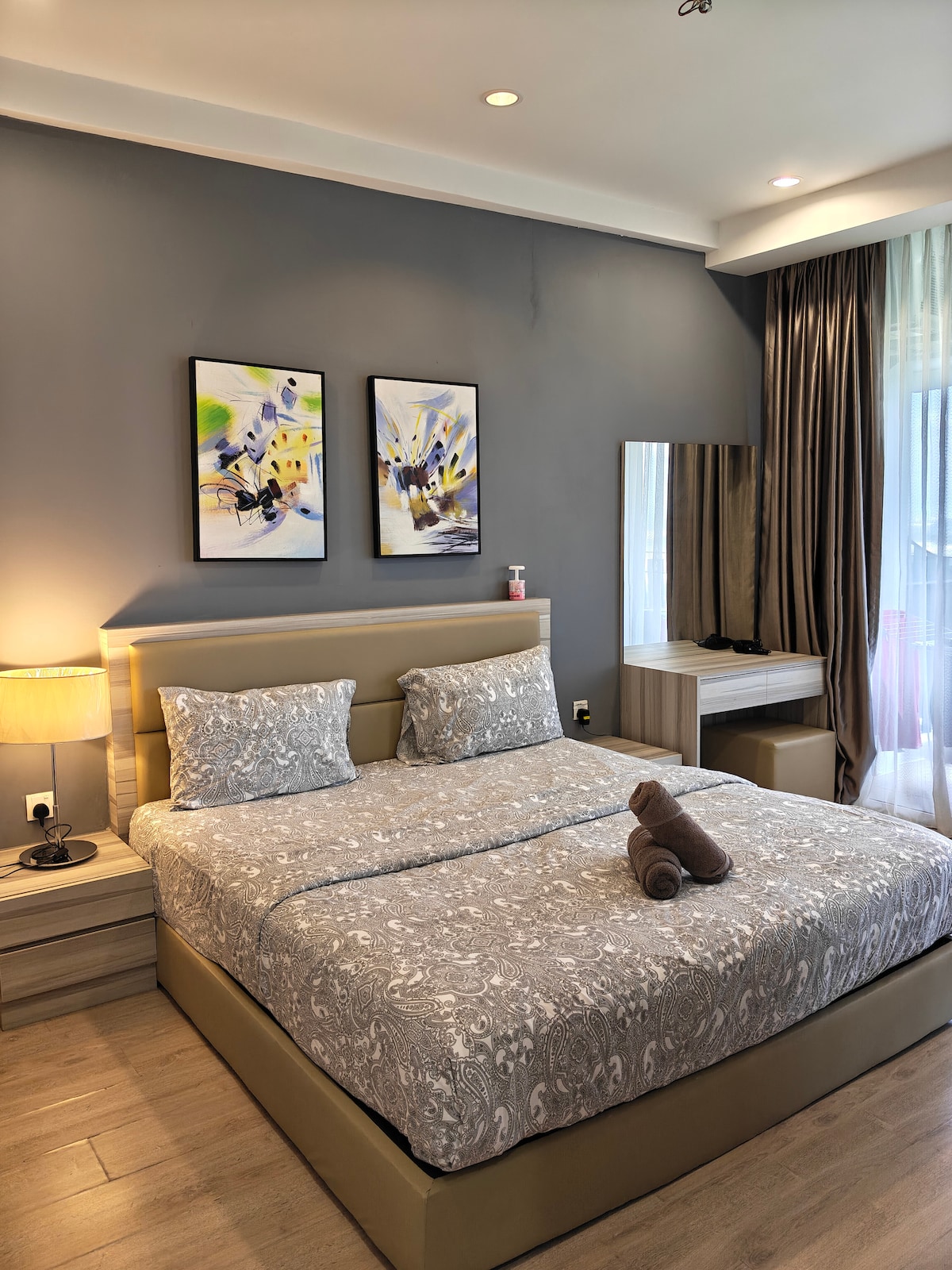 🤗JB House je elegantno prenočišče v visokem nadstropju z dvema spalnicama, ki se ponaša z hotelsko kakovostjo, mehko posteljnino, urejeno notranjostjo in popolnoma opremljeno kuhinjo. Idealno za družine, pare, prijatelje in poslovne potnike, z dostopom do bazena, telovadnice, igralnice in brezplačnega parkiranja. Nahajamo se le nekaj minut od Legolanda, Bukit Indaha, nakupovalnega središča Sunway Big Box, Medine in glavnih avtocest. Zabava, hrana, nakupovanje in miren oddih so vam na dosegu roke. Pričakujte čist in prijeten prostor, odlično opremo, skrbno ustvarjeno bivanje, resnično 5🌟 dom stran od doma