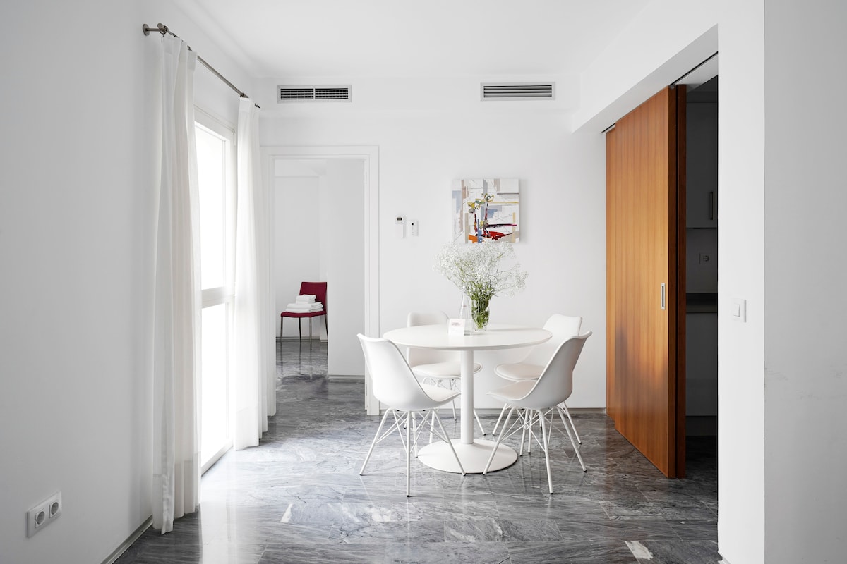 To elegantno stanovanje se razprostira na 81 m2 in je idealno za družine ali skupine 6 oseb. Stanovanje se nahaja v bližini čudovite palače Reales Alcázare in ponuja tri (3) spalnice, dve spalnici z zakonsko posteljo in eno spalnico, opremljeno s pogradom. Širok prostor vključuje tudi dve (2) sodobni kopalnici s prho in odprto dnevno sobo z jedilno mizo. S popolnoma opremljeno kuhinjo je stanovanje kot nalašč za sprostitev po obisku Seville.