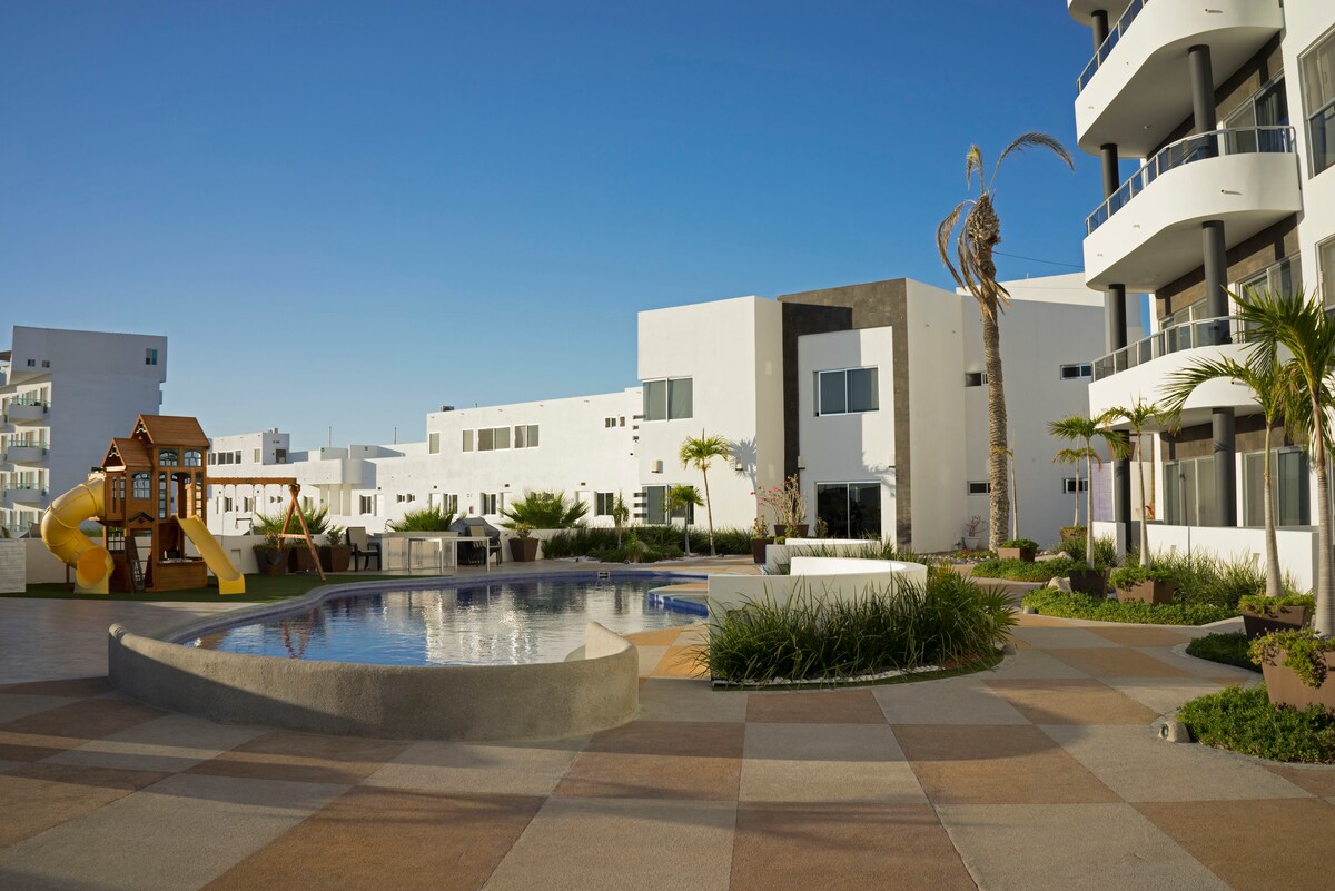 Baja California Sur: sprostite se na počitnicah v udobju naših novih, prostornih in elegantnih nastanitev. Stanovanje se nahaja v bližini znamenitih Malecon de la Paz in Marine de Cortez. Vsi ljudje, otroci in odrasli so dobrodošli. Zelo osrednja lokacija vam omogoča, da z mirnim sprehodom pridete do zgodovinskega središča mesta in uživate v najboljših restavracijah in pivovarnah, ki se nahajajo v tipičnih ulicah.