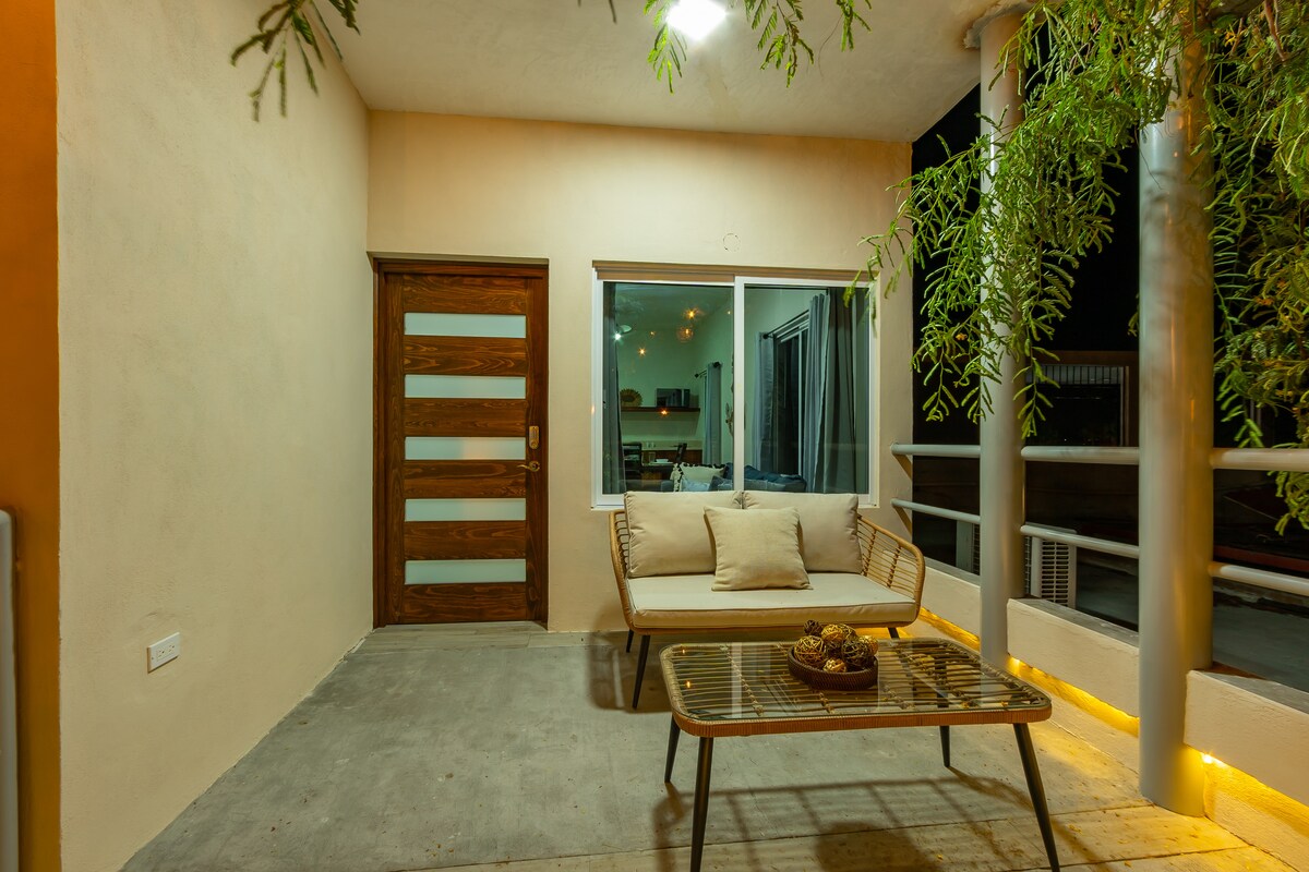 Ta eklektična, umetniška dvosobna hiša je oddaljena manj kot pet minut hoje do čudovite plaže / Malecona. Lastniki so edinstveno zasnovali celotno prenočišče tako, da ustvarijo sproščeno in vabljivo vzdušje za goste. Vključuje pokrito teraso in dvorišče z zasebnim bazenom, ki je kot nalašč za sprostitev in uživanje v osupljivih večernih barvah La Paza. Popolnoma se nahaja v bližini najboljših, najbolj priznanih restavracij, kavarn in trgovin v La Pazu, vse v bližini in mini-marta za vogalom.