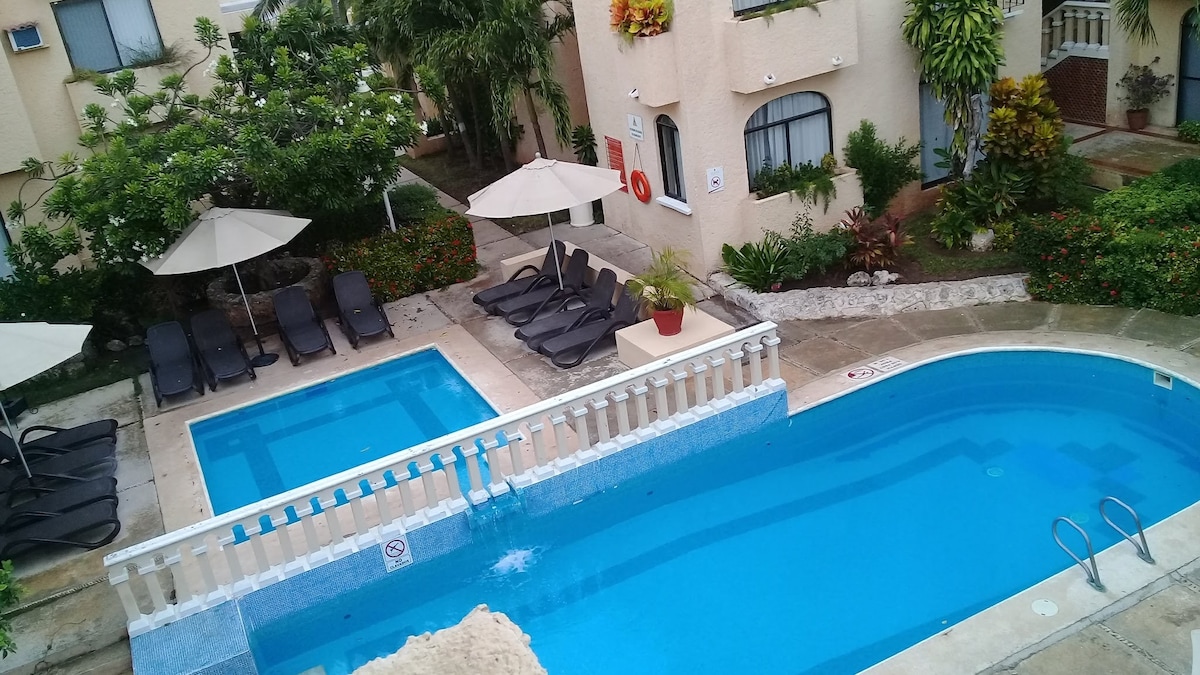 Udobno stanovanje se nahaja v središču Cancuna, zelo varnem območju v bližini večine turističnih znamenitosti, restavracij, kavarn, javnega prevoza, supermarketov in nakupovalnih centrov. Stanovanje vam bo všeč zaradi lepega pogleda na bazen, 15 minut vožnje od hotelske cone in lepih plaž! Nahaja se v stanovanju s čudovitimi bazeni, telovadnico in 24-urnim varovanjem. Prostorno in udobno stanovanje z 2 spalnicama z 2 zasebnima kopalnicama, dnevno sobo, kuhinjo in pralnico. Dobrodošli boste.
