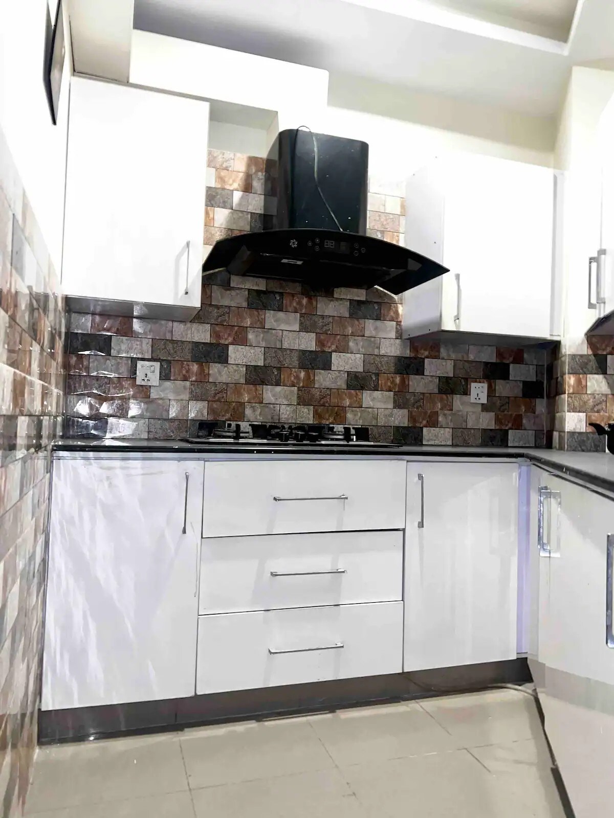 A centrally located 2-bedroom apartment on Hilal Road, opposite F-11 Markaz, offering comfort and convenience. Key Features: Secure Parking: Convenient parking in the basement or in front. Family-Friendly: Peaceful environment for families. Utilities: Constant gas and hot water supply. Entertainment: 50-inch Smart TV, Netflix, and Wi-Fi. Power Backup: UPS for uninterrupted power. Security: CCTV camera in the hallway monitoring the apartment entrance for security purposes.