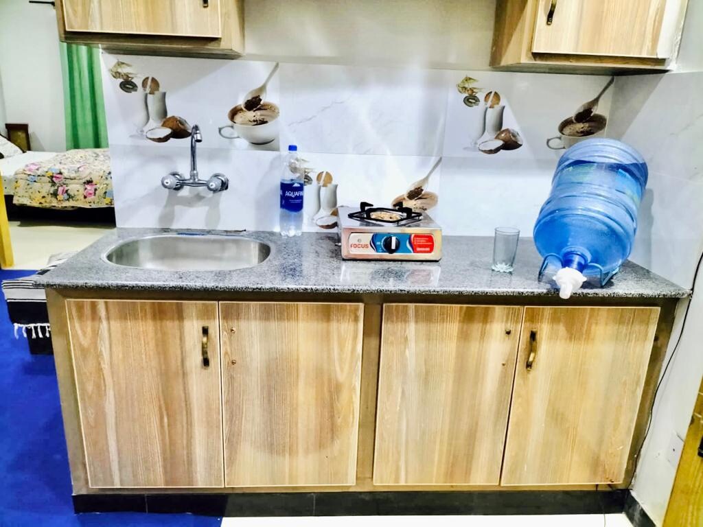 Prostorno in premišljeno oblikovano enosobno stanovanje v TopCity-1, ustvarjeno posebej za udobje gostov in resnično doživetje doma. Je bistveno večje od standardnih stanovanj in ima eleganten bivalni prostor, udobno spalnico, hiter Wi-Fi z optičnimi vlakni, pametno televizijo in popolnoma opremljeno kuhinjo. Uživajte v kinematografskih razgledih, mirni okolici, varnem samostojnem vstopu in varnostni službi, ki je na voljo non stop. Le nekaj minut od mednarodnega letališča Islamabad, trgovin, restavracij in glavnih cest.